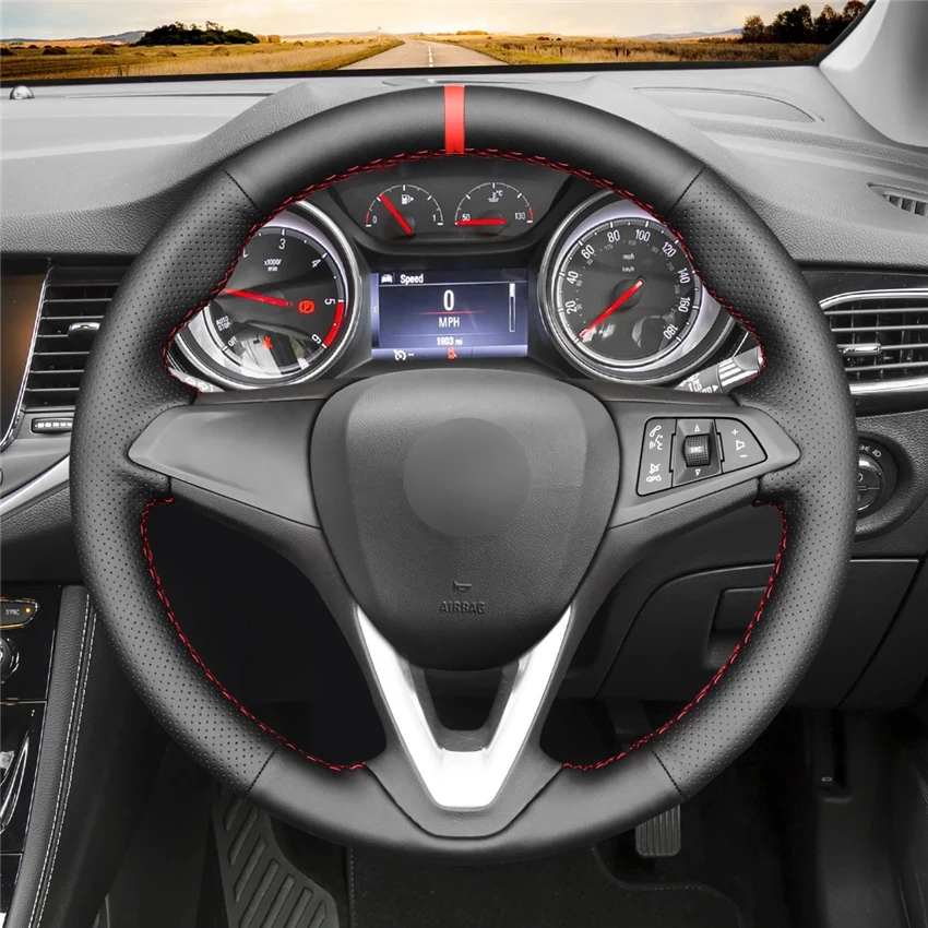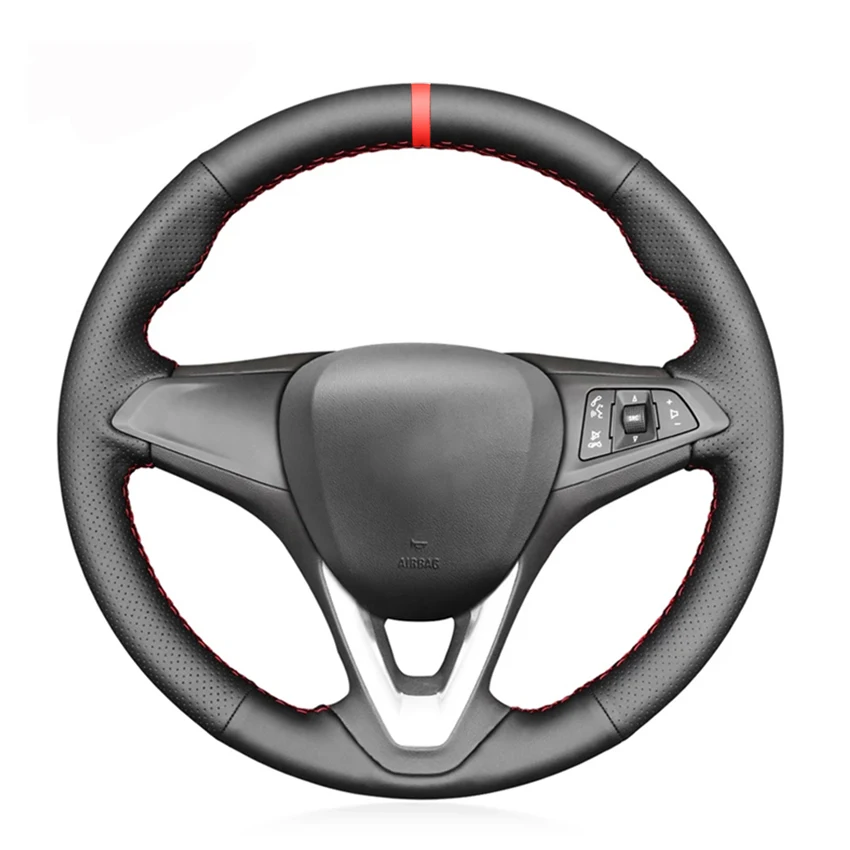 Кожаный чехол на руль с красным маркером для Opel Astra (K) Corsa (...