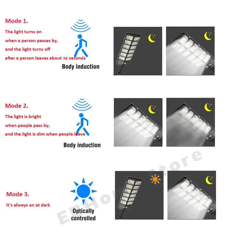 Режим 2: горит, когда люди проходят мимо, 50% яркости, когда люди далеко