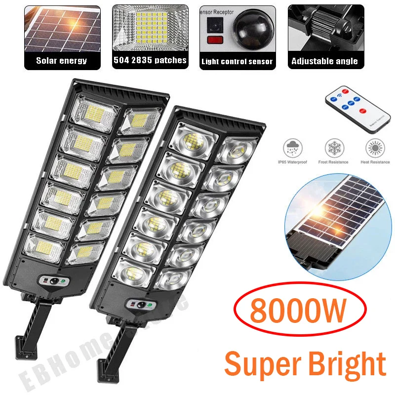 Уличная лампа на солнечной батарее, 8000 светодиодов, Вт
