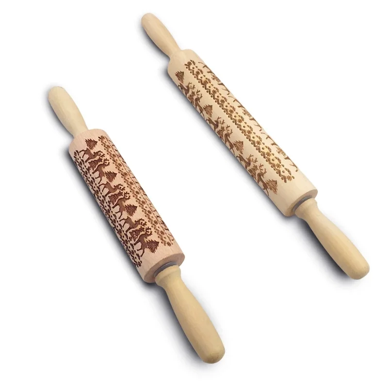 Скалка для тиснения с деревянными листьями, рождественскими оленями...