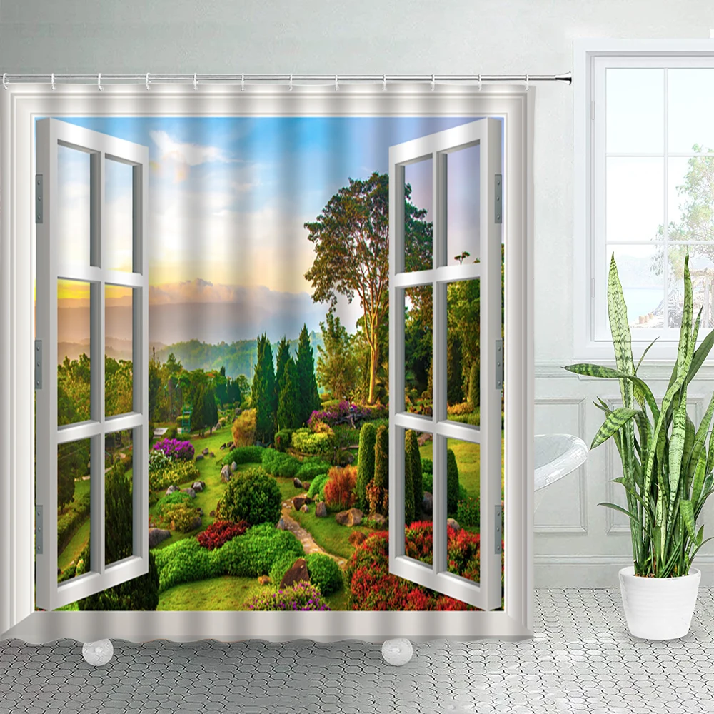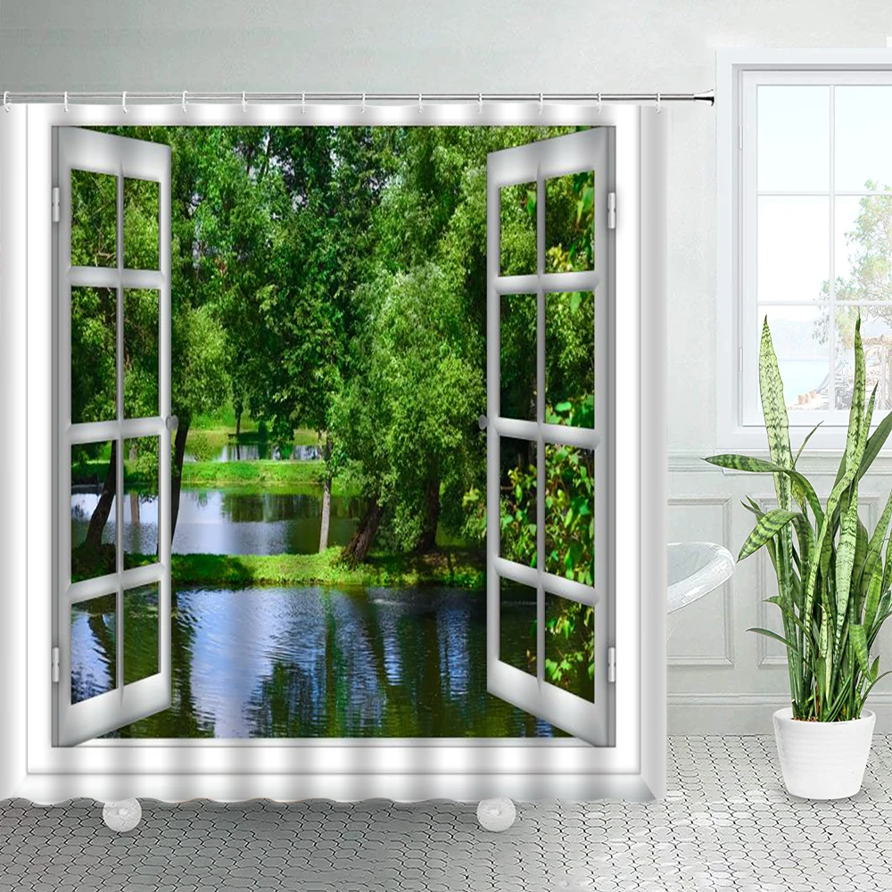 Занавеска для душа с 3D изображением леса, Весенняя занавеска для сада и ванной комнаты с сельским ландшафтом, полиэстеровый декор с принтом водопада, зеленая