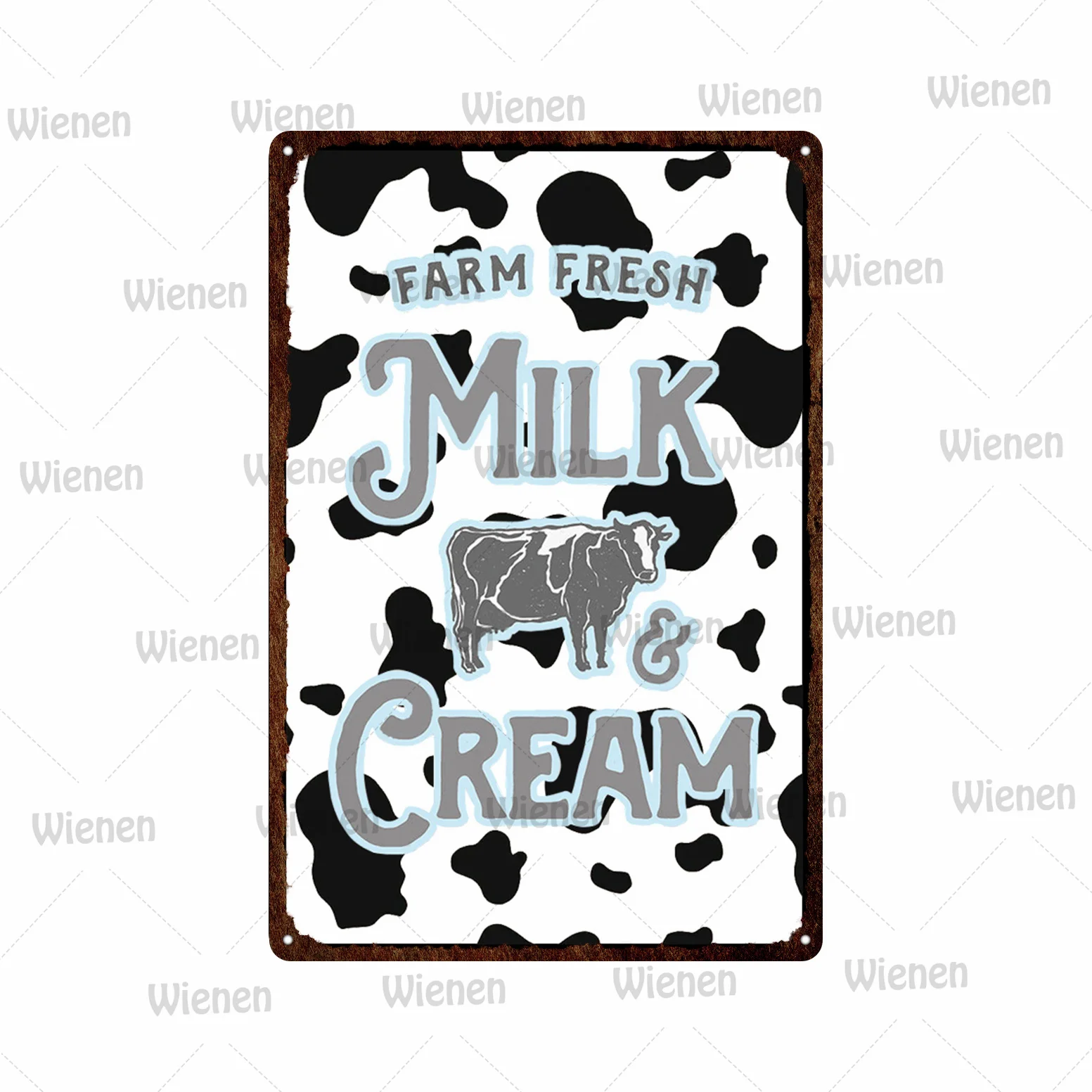 Металлические оловянные знаки для фермы, свежее молоко, рисунок коровы, классическое фермерское ранчо, настенное металлическое украшение с металлической рамкой