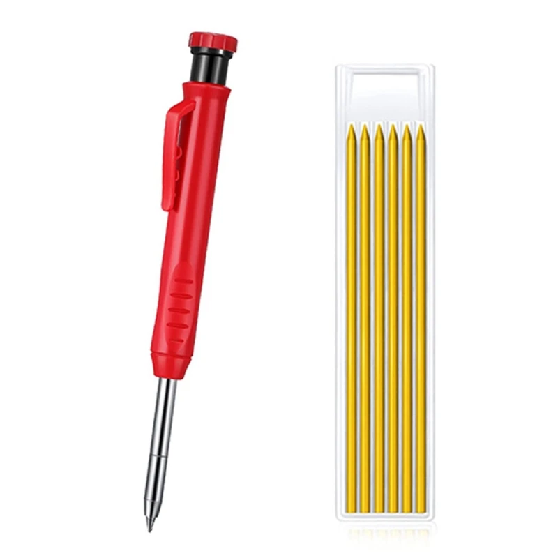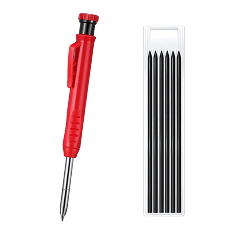 Твердый выдвижной плотничный карандаш, набор для строительства, 6 выводов, точилка, механические карандаши, деревообрабатывающий маркер, инструмент для деревообработки E06C