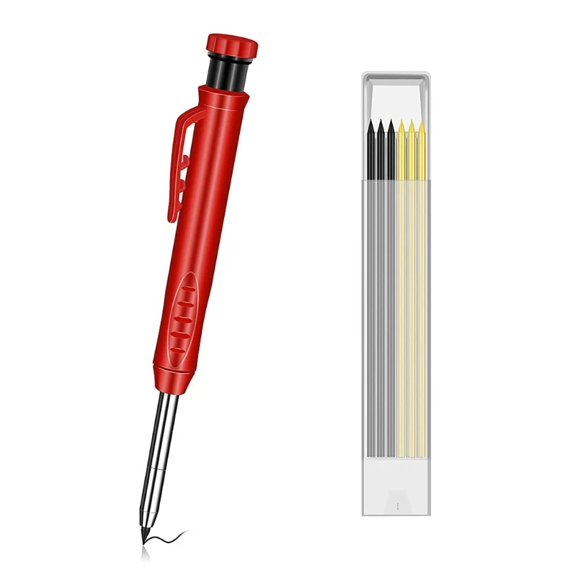 Твердый выдвижной плотник карандаш набор для строительства 6 проводов точилка механические карандаши Дерево Маркер Инструмент Деревообработка E06CОсобенности на 100% абсолютно новый и высокого качестваУстройство для создания глубоких отверстий: карандаш для плотника с глубоким отверстием разработан с удлиненным наконечником в длину, достигая труднодоступных мест, где другие маркер плотника не идут, подходит для маркировки через отверстия или в других плотных областях.Встроенная точилка для точных отметок: точилка для карандашей вкручивается в верхнюю часть механических карандашей для рисования, которые не потеряются и ваш механический карандаш всегда будет заточен для хорошей точности.Механический карандаш: карандаш не выскальзывает из пальцев и повторяющиеся следы вызывают меньше боли; Дизайн зажима ручки легко крепится к кармане, прост в использовании и не легко теряется, повышая эффективность, подходит для строительства и кирпичной кладки.Отметки на различных поверхностях: твердый плотник карандаш может рисовать на металле, пластике, стекле, дереве, бумаге и т. Д.; Чертежный Карандаш свинец прочный, смазка, которая прослеживается везде и прочнее твердого свинца; Золото можно протирать на темных поверхностях, где серый свинец не вытягивается.Многоразовый для непрерывного использования: Пополнение маркера для деревообработки-Черное золото или красный цвет, в комплекте 6 наконечников для пополнения, которые могут удовлетворить ваши потребности в маркировке для деревообработки в течение длительного времени.Спецификация: Материал: металлРазмер: Ручка: прибл. 145 мм/5,98 дюйма пополнение: прибл. 120 мм/4,72 дюйм (ов)Стиль: ручка + черный золотой смешанный пополнение, ручка + красный пополнение (2 варианта на выбор)Посылка включает в себя: 1 набор твердых карандашей для плотника (включая 1 ручку и 6 заправок)Примечание: 1. Допускается погрешность в 1-2 см из-за ручного измерения, убедитесь, что вы не возражаете перед заказом.2. В связи с разной конфигурацией разных мониторов изображение не отображает фактический цвет товара.