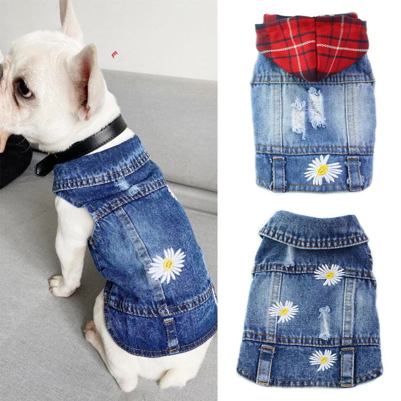 XS-XXL джинсовый костюм для собак, весенний ковбойский жилет для французского бульдога, Милая ромашка, рубашка, джинсовая куртка, одежда для собак, чихуахуа, йоркширов