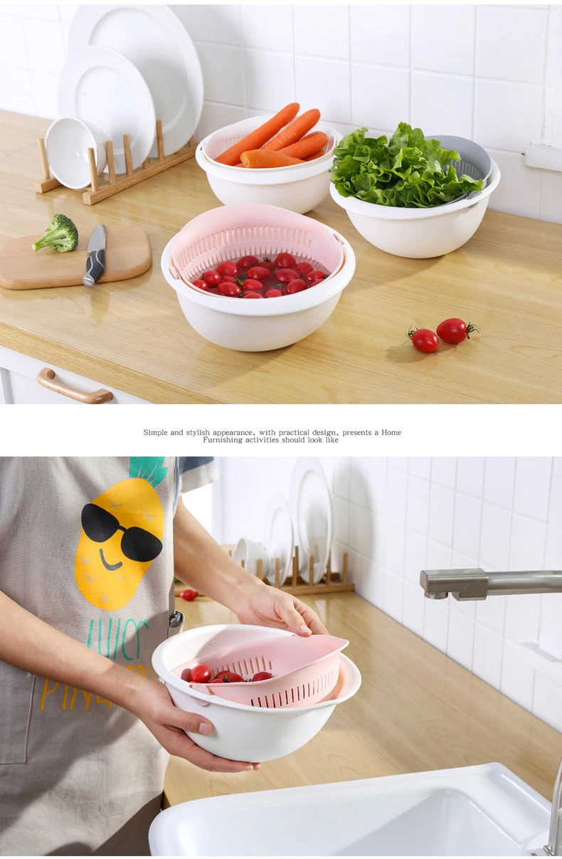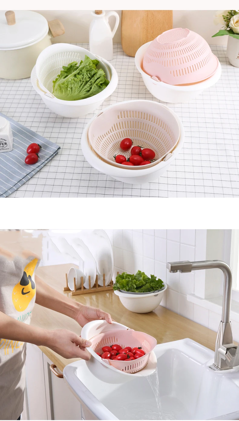 Двойная сливная корзина, чаша для мытья риса, ситечко для кухонной ...