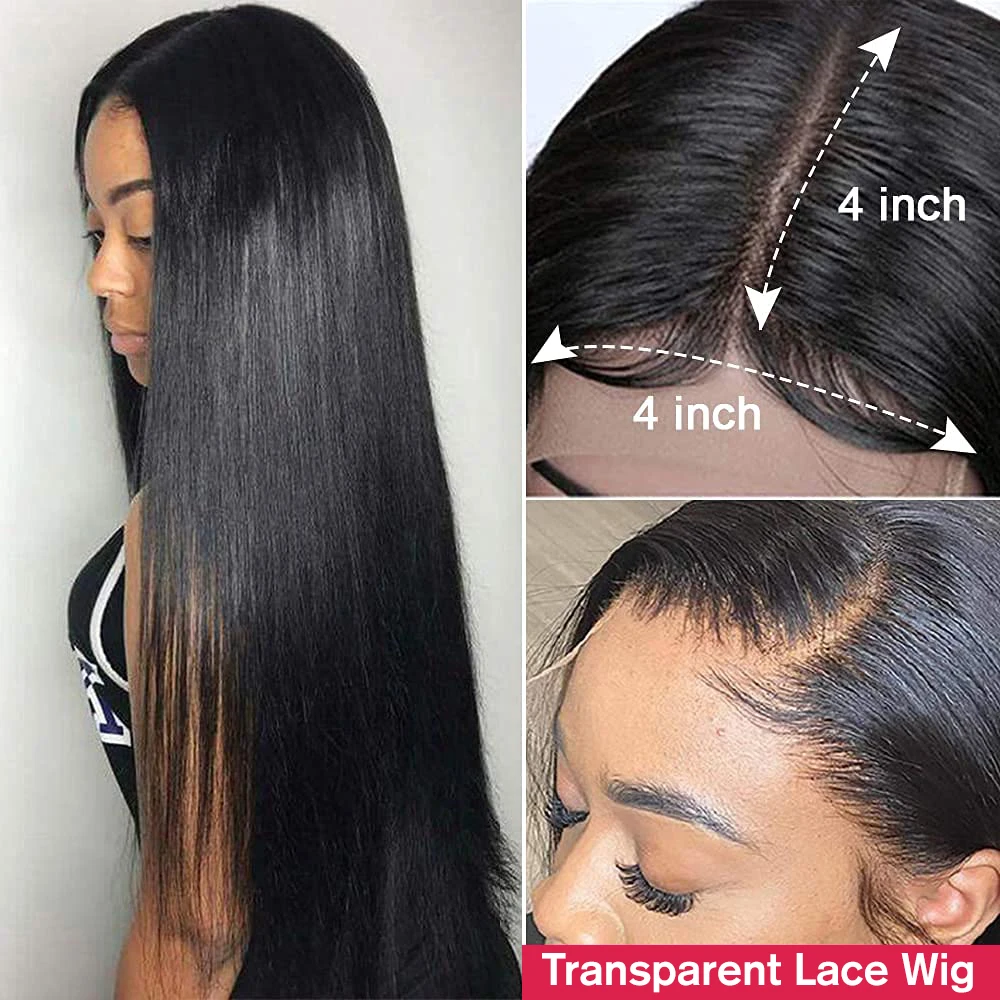 Прямые парики из человеческих волос 4X4 на сетке, плотность 150, прозрачный парик на сетке, бразильские прямые волосы, парики без повреждений, человеческие волосы для женщин