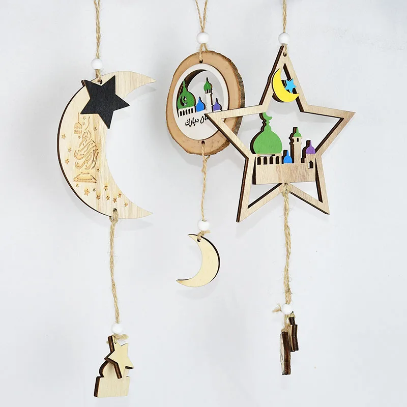 1 шт. Eid Мубарак деревянный лунный подвесной орнамент деревянный к...
