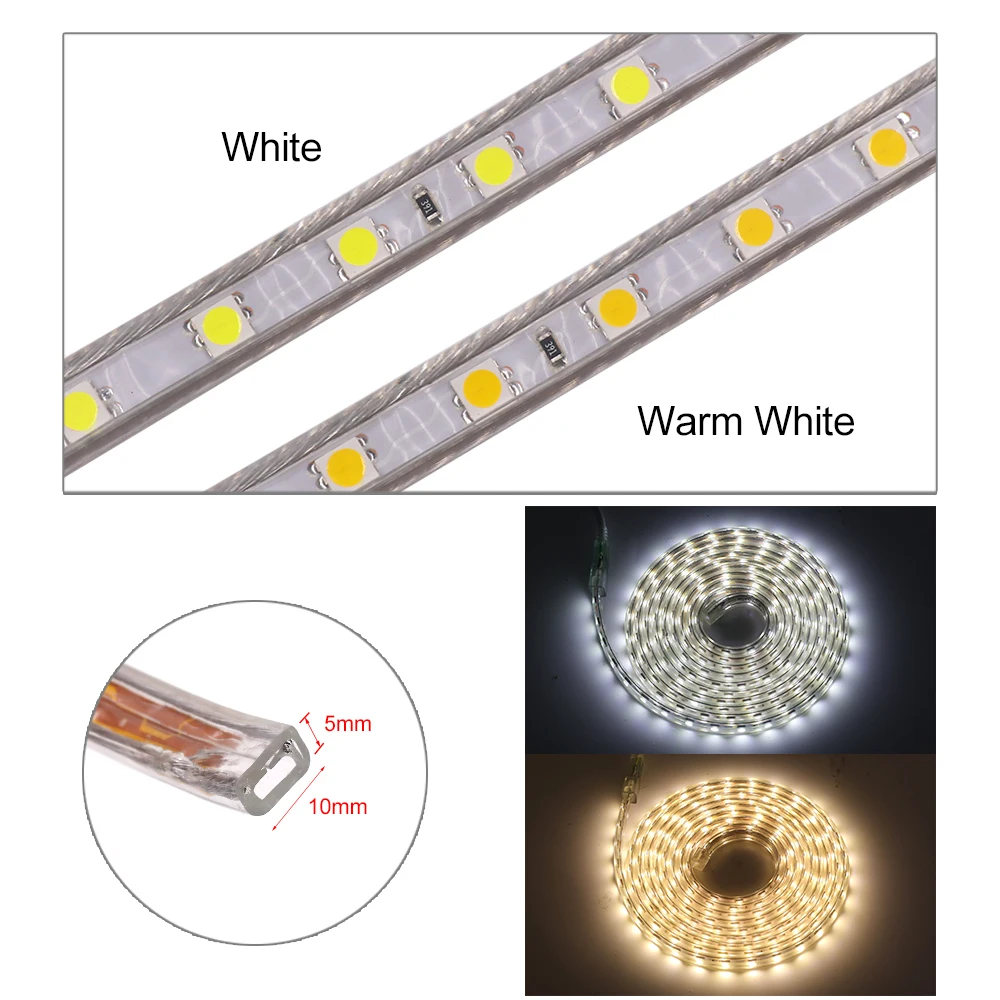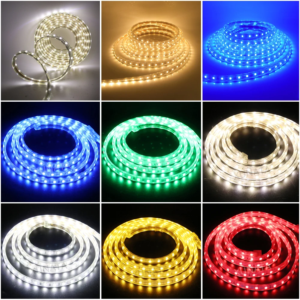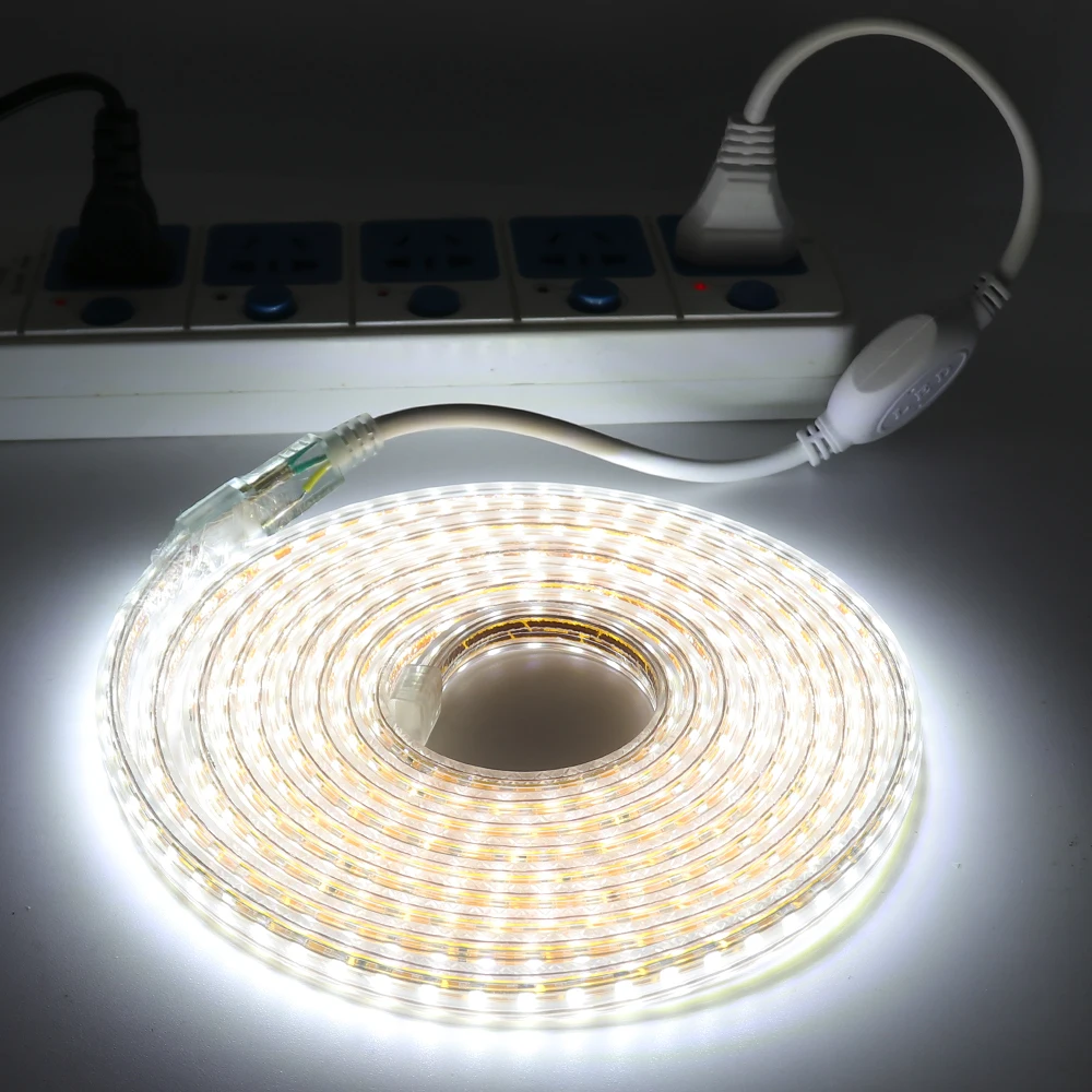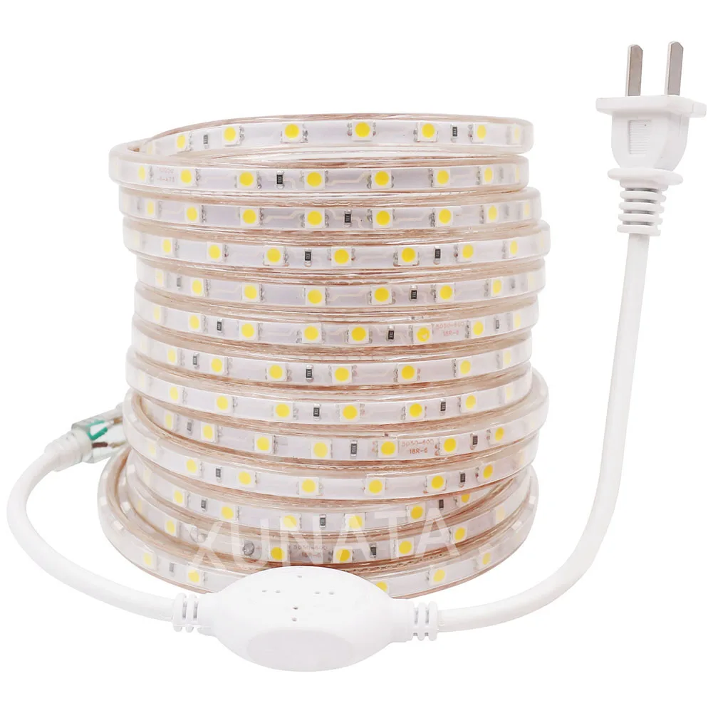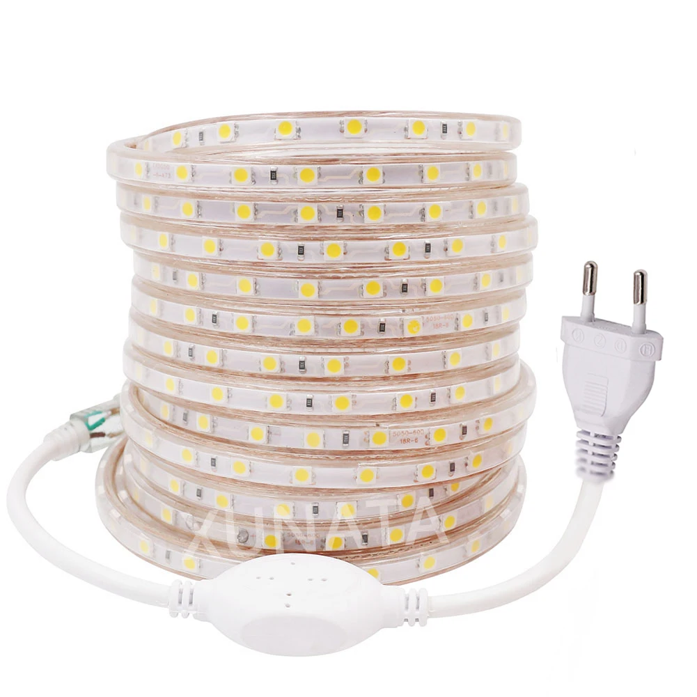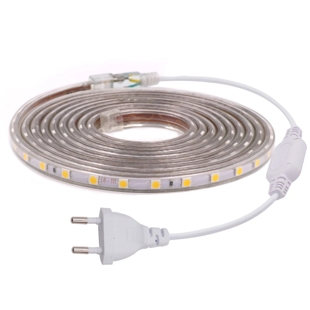 Светодиодная лента 220 В уличная водонепроницаемая гибкая лента 60 светодиодовм SMD 5050 Светодиодная лента с разъемом питания белый красный зеленый синий
