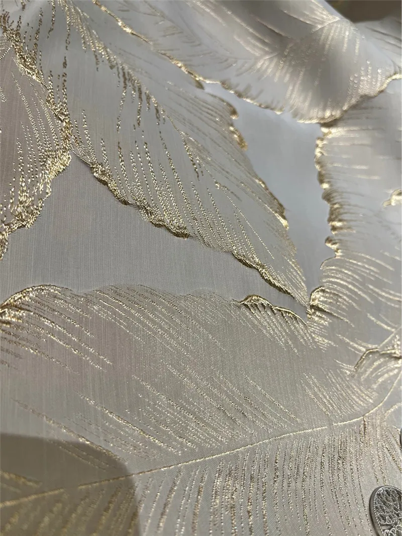 Роскошная рельефная золотая нить 3D лист бежевая занавеска высокото...