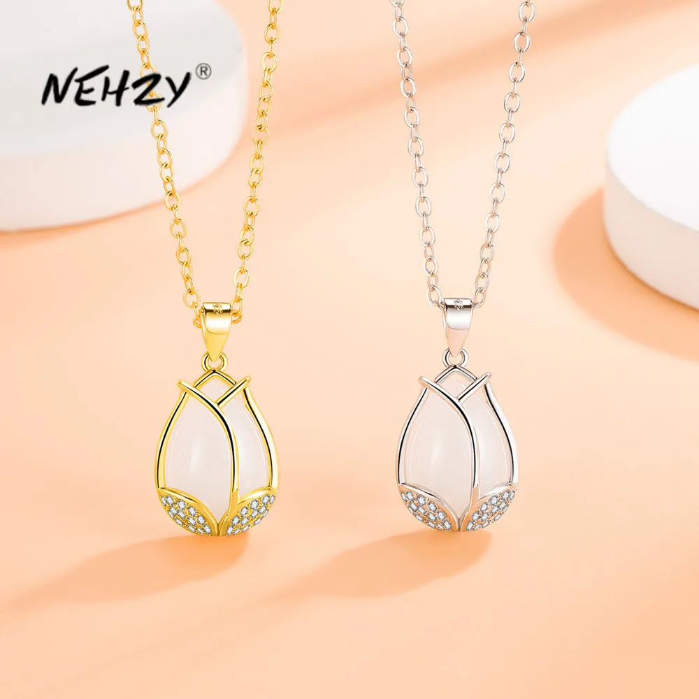 NEHZY S925 штамп серебряные новые женские модные ювелирные изделия Высокое качество Кристалл Циркон тюльпан цветок опал кулон ожерелье длина 45 см