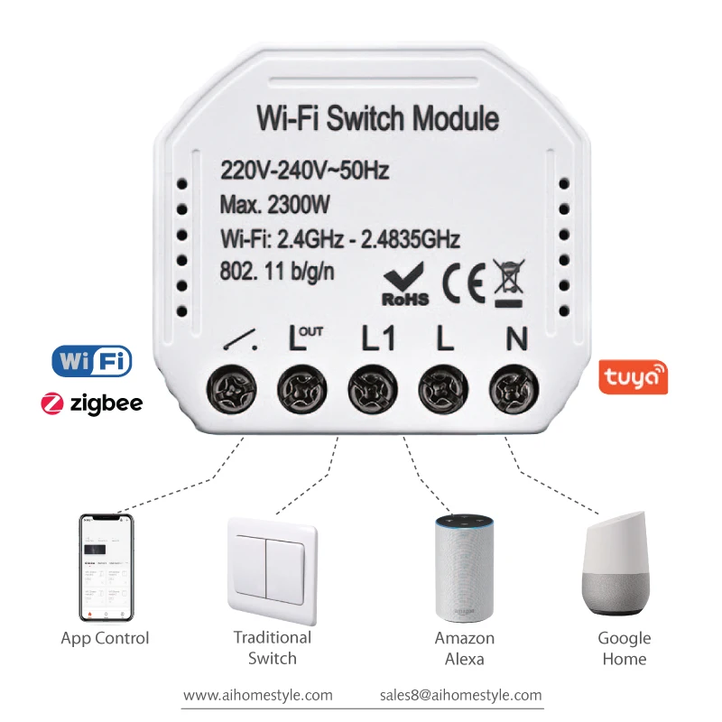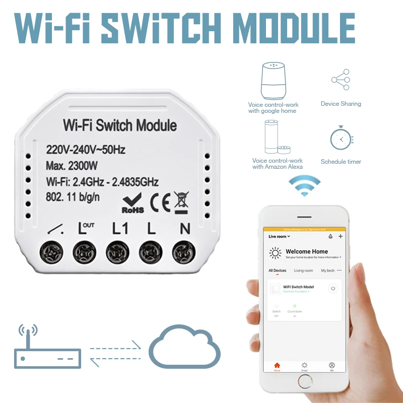 Это 1 модуль интеллектуального переключателя, который позволяет беспроводное управление вкл/выкл на мобильный телефон. Поддержка Alexa и Google Home. Его можно использовать в освещении и бытовой технике, такой как холодильник, водонагреватель, телевизор, кондиционер, электрический вентилятор и т. д. функция управления дальним расстоянием и синхронизации.