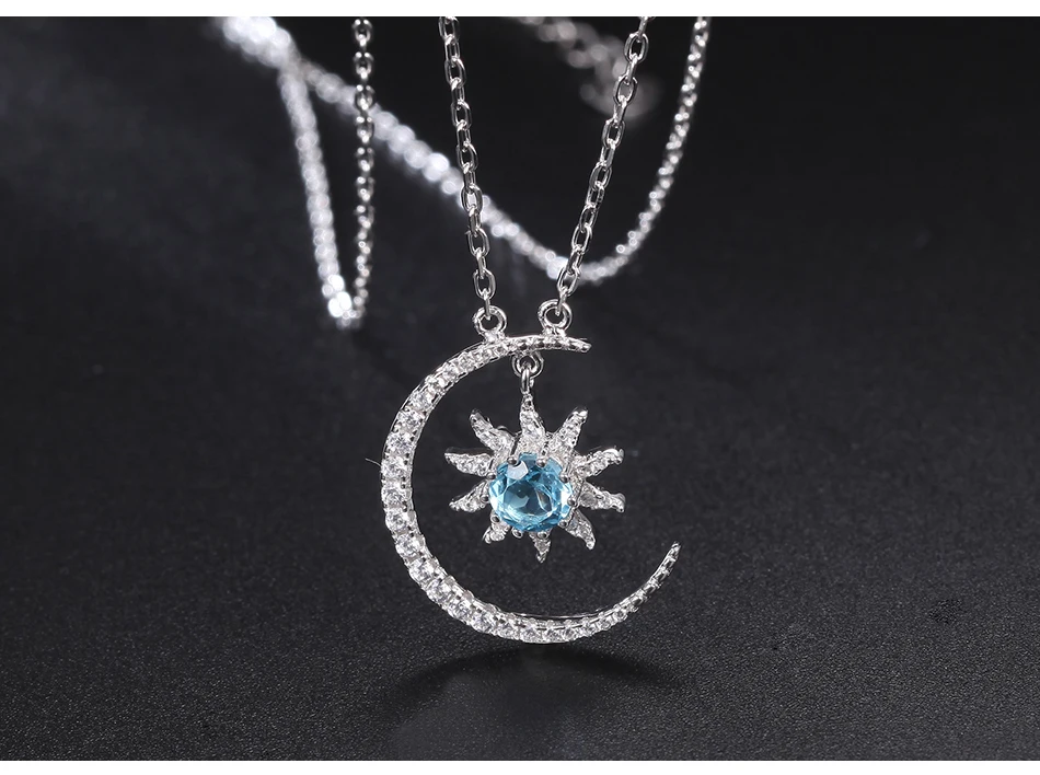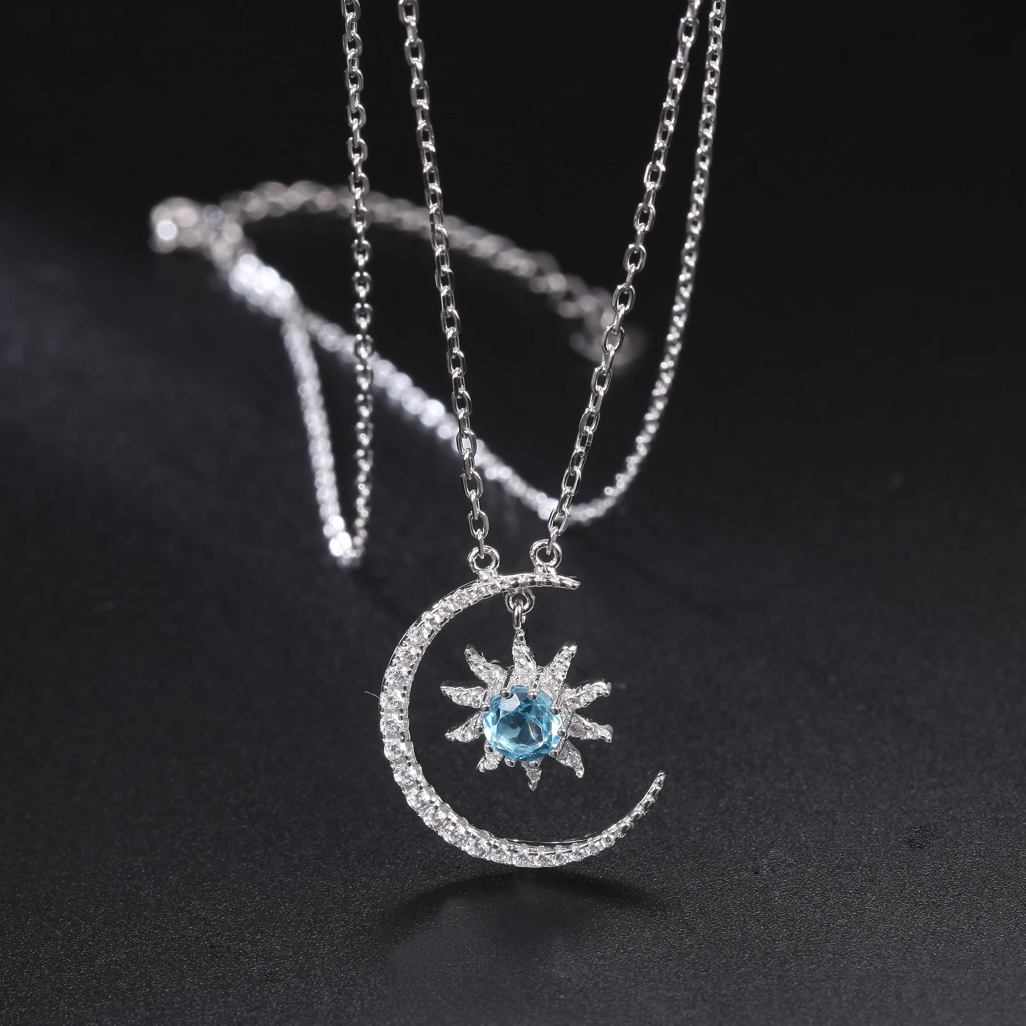 Женское Ожерелье с кулоном GEM'S BALLET, ожерелье с кулоном из стерлингового серебра 925 пробы с натуральным круглым швейцарским голубым топазом