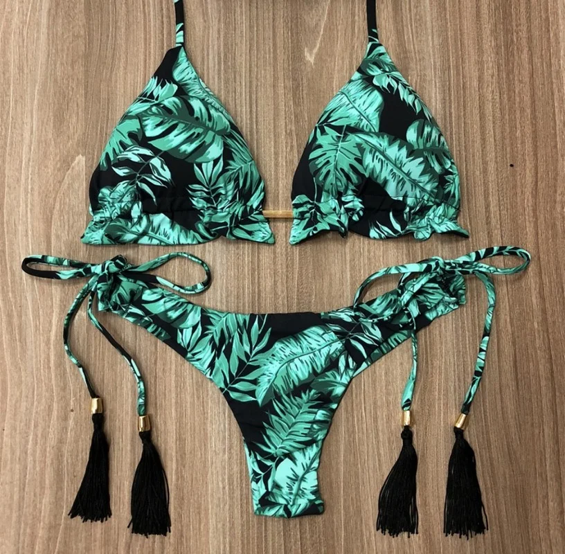 2021 купальник с принтом листьев, Бразильское бикини, стринги, купа...