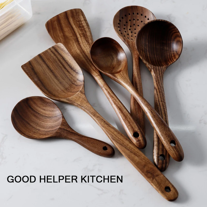 Ложка Из Тикового Дерева, 1-7 шт.компл., половник-дуршлаг Специальн...