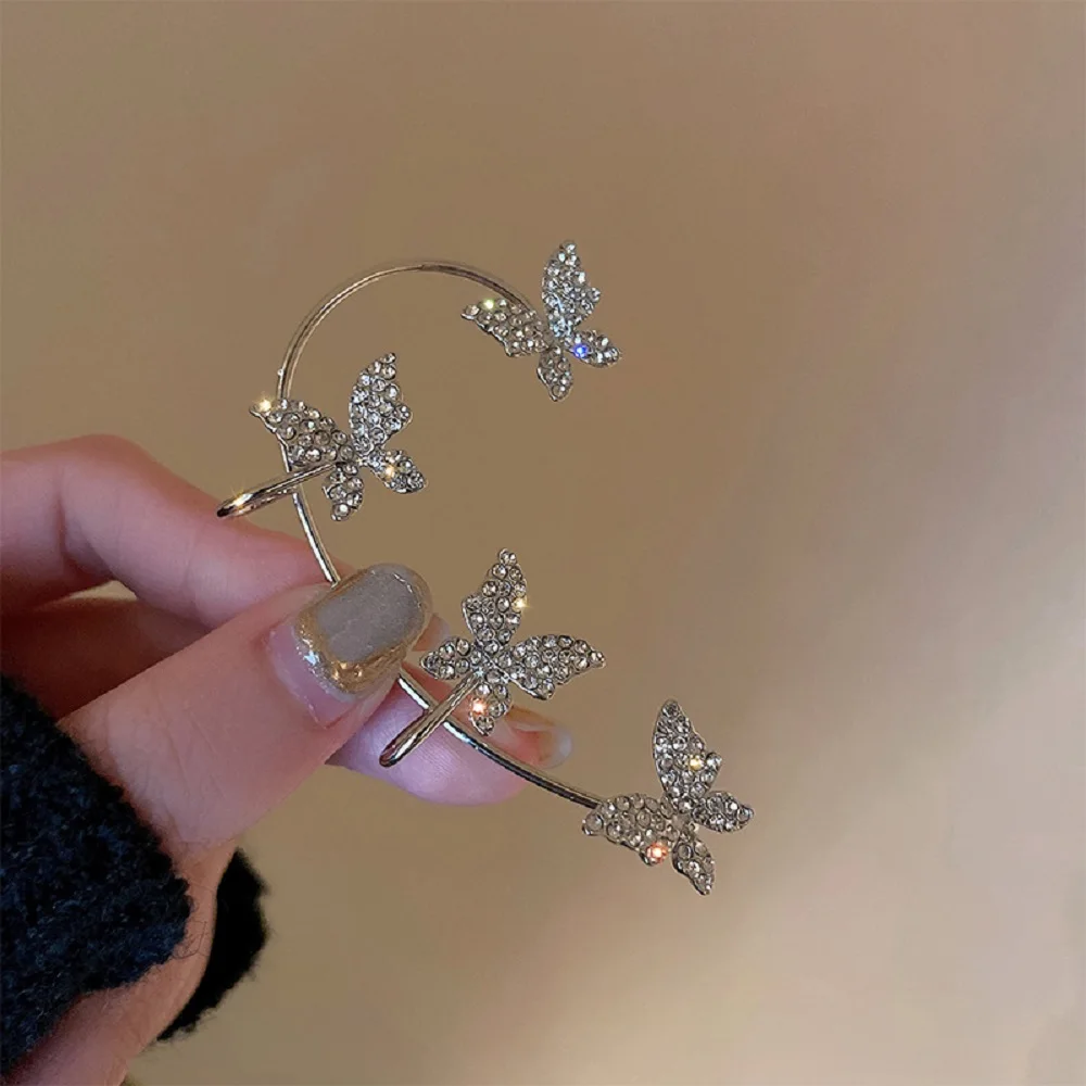 Серьги-клипсы женские с цирконом, модные блестящие клипсы для Пирсинга Ушей, в форме снежинки, бабочки, вечерние ринки, свадьбы, подарочные украшения