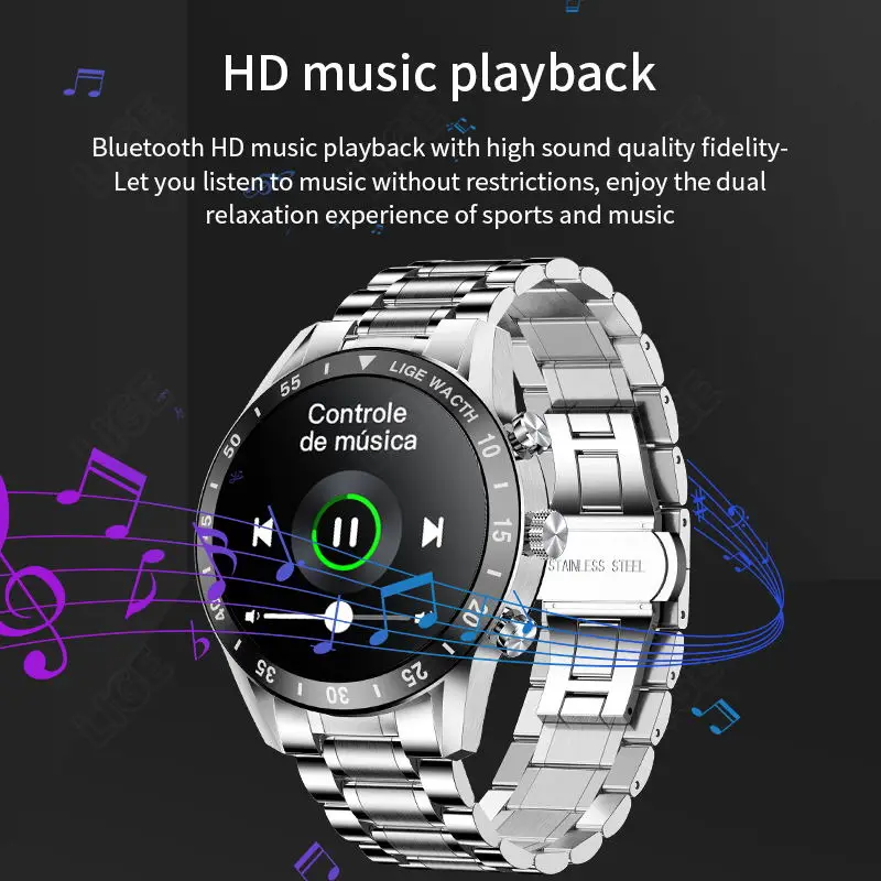 Смарт-часы LIGE 2022 мужские с поддержкой Bluetooth и Пульсометром