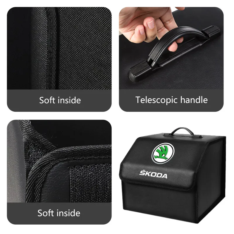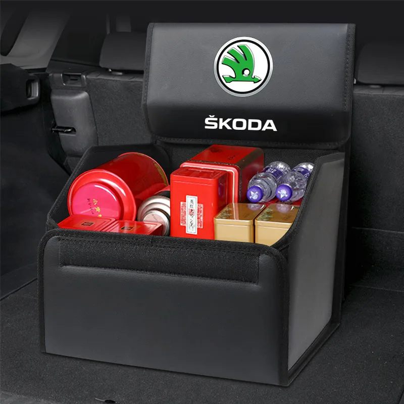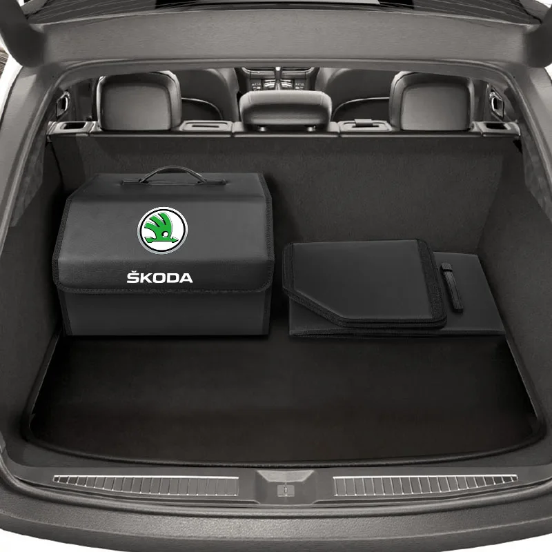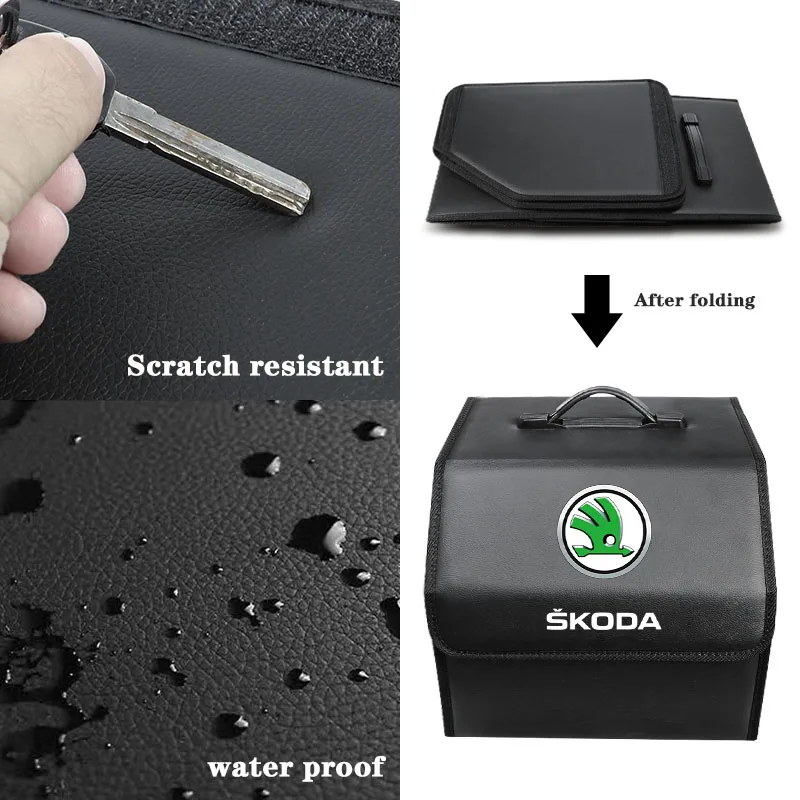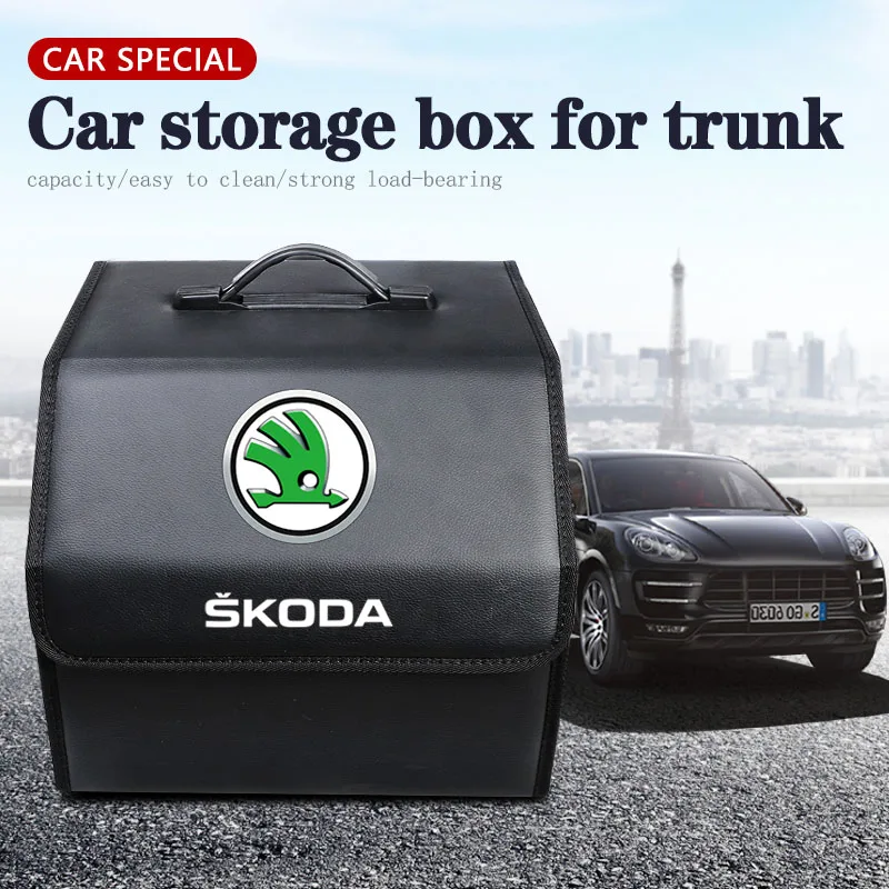 Автомобильный логотип, внутренний багажник, многоцелевой Органайзер, складная коробка для хранения для Skoda Fabia Karoq Superb Scala Kamiq Octavia Rapid Kodiaq