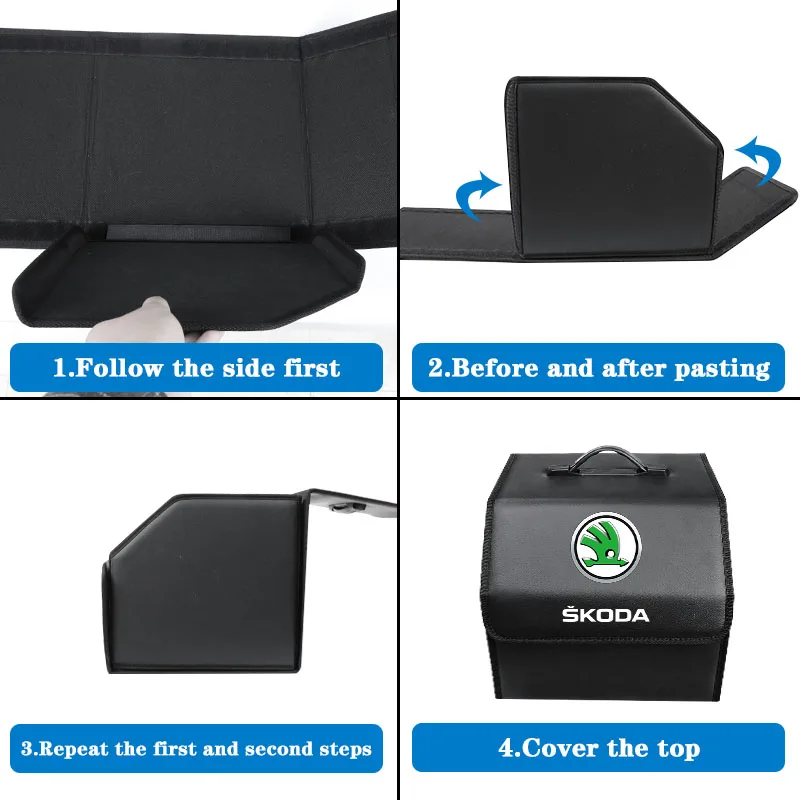 Логотип автомобиля, интерьер багажника, многофункциональный органайзер, складной ящик для хранения для Skoda Fabia Karoq Superb Scala Kamiq Octavia Rapid Kodiaq