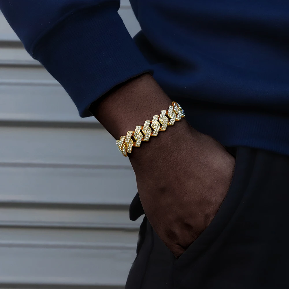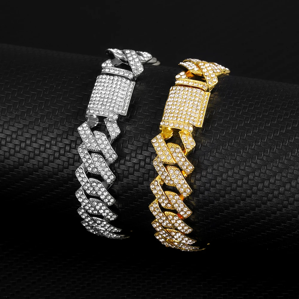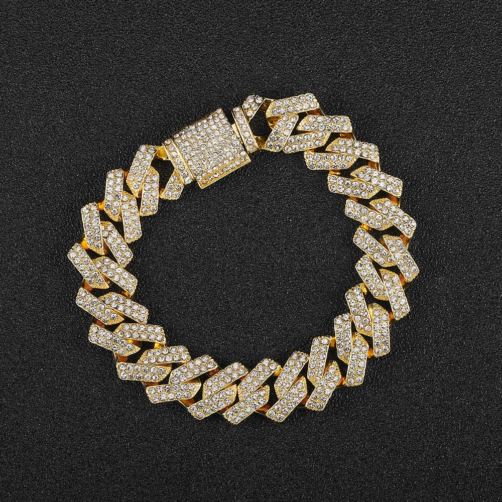Тип: БраслетПол: мужчин/wo мужчинСтиль: Кубинская ссылкаФорма: звеньевая цепьДлина браслета: 8 дюймовШирина: 15 ммЦвет: золотой, серебряныйМатериал: позолота 14kОсновной камень: Стразы AAA