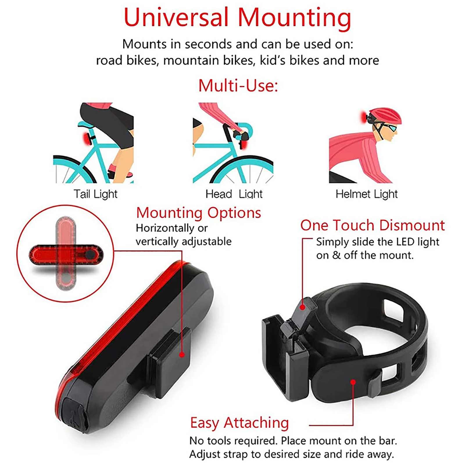 Задний фонарь для велосипеда, перезаряжаемый от USB, Красный Ультра-яркий задний фонарь s, подходит для любого велосипедашлема, легко устанавливается для безопасности велоспорта