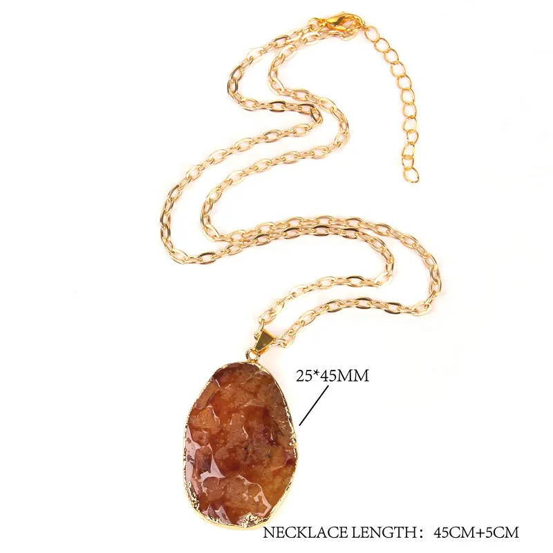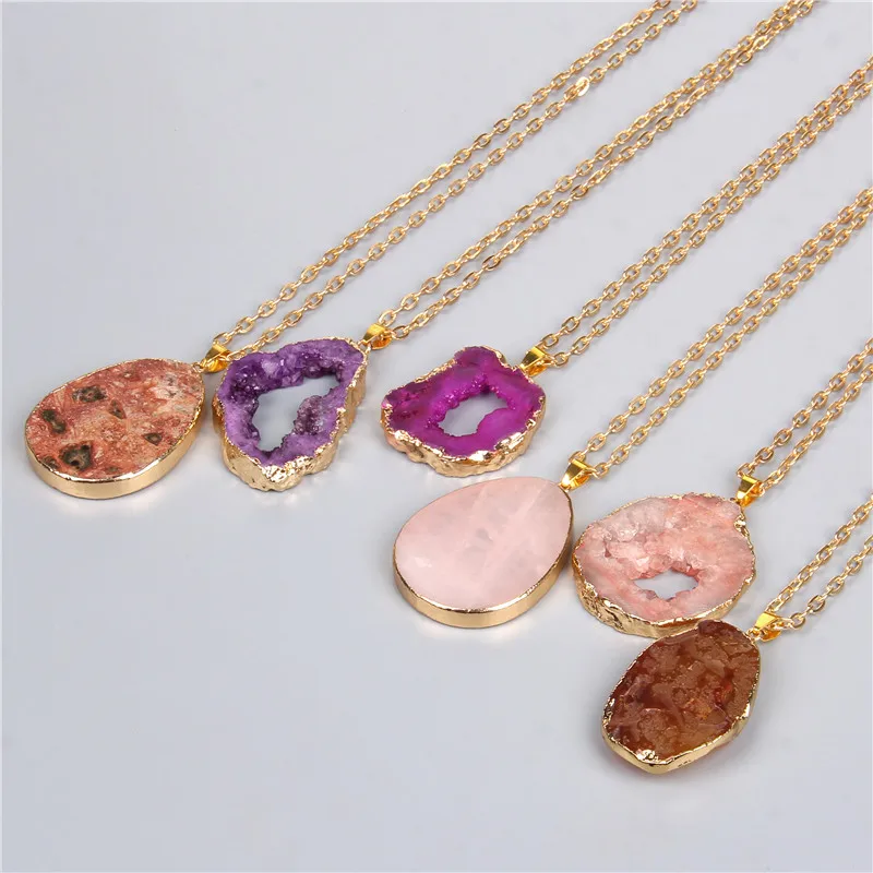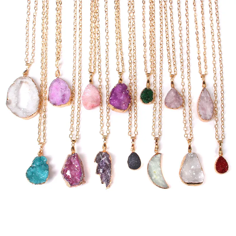 Модное ожерелье с подвеской из натурального кварца и друзы, Золотая цепочка, неправильное ожерелье с подвеской, энергетическое исцеление, ювелирные изделия для женщин, друзей