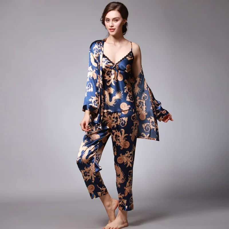 Летний женский пижамный комплект из трех предметов 5 цветов ночная ...