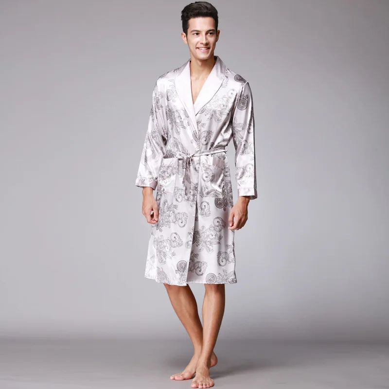 Мужские атласные халаты с драконом, Роскошные пижамы, шелковые пижа...