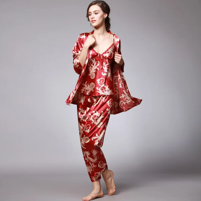 Женский атласный Шелковый пижамный комплект SSH008, женская одежда ...