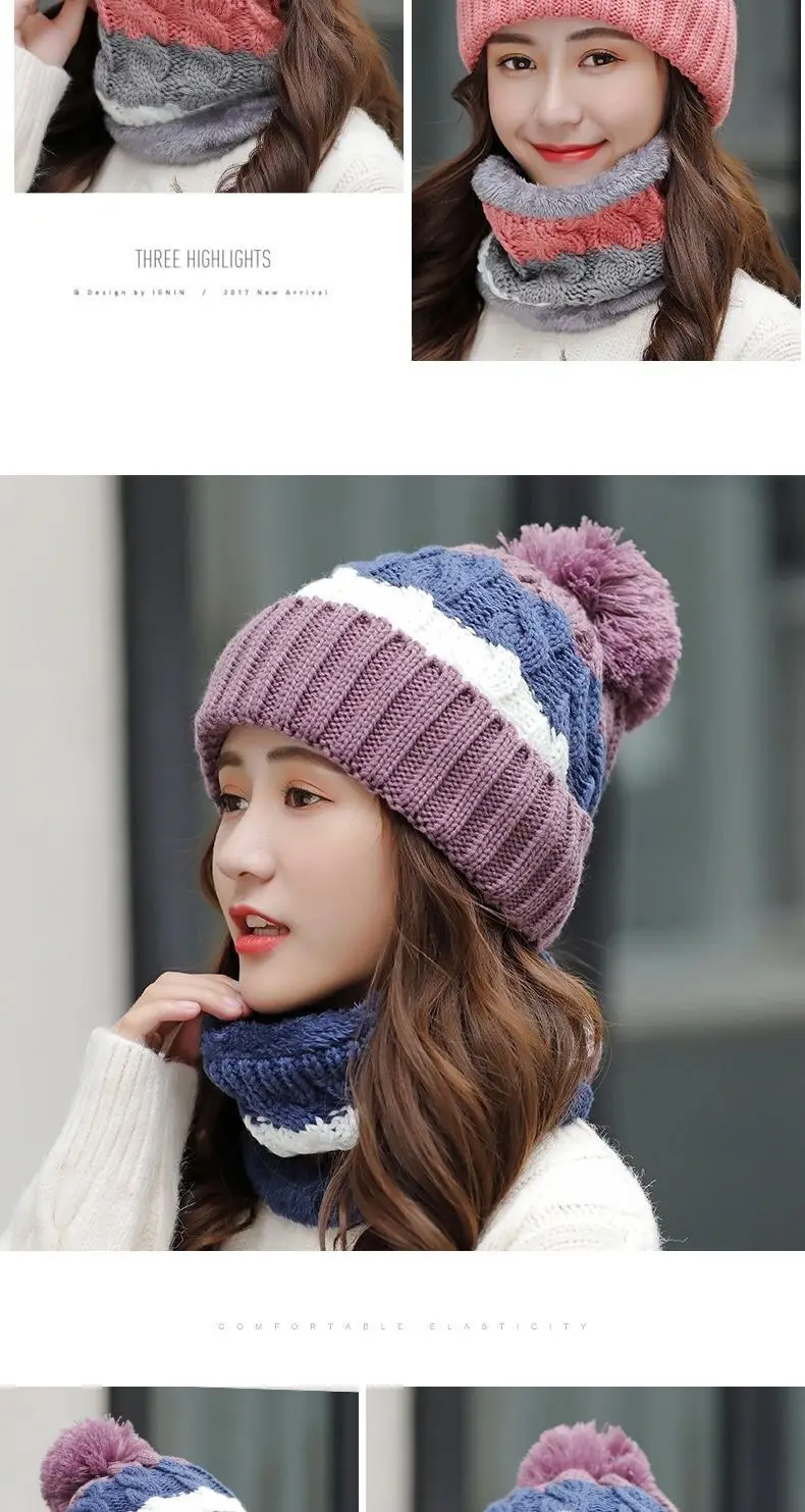 Новинка 2021 г., женская шапка и шарф Zhaoyuan на осень и зиму, плотная вязаная теплая шапка, шарф, ветрозащитная сшитая шапка, шапка с узором, наборы 2