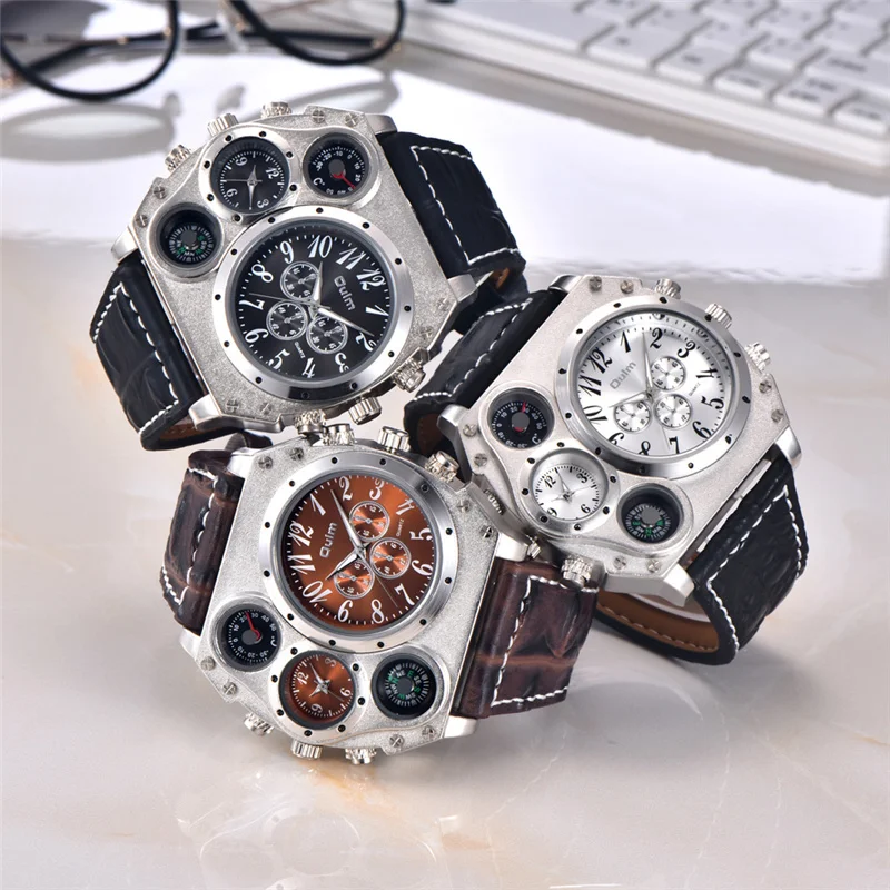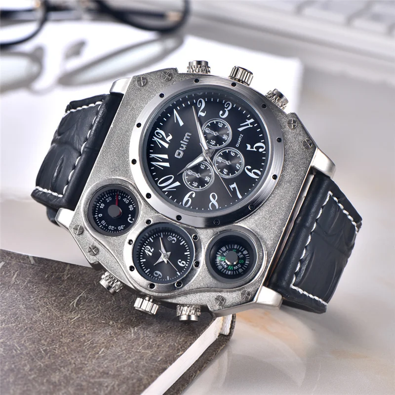 Oulm 1349 супер большие часы мужские спортивные часы декоративный компас широкий кожаный ремешок кварцевые наручные часы мужские наручные часы
