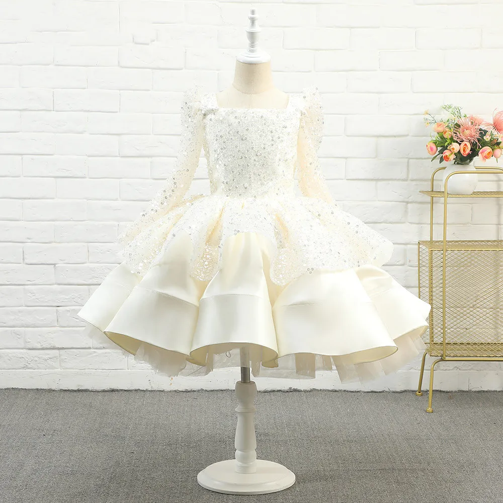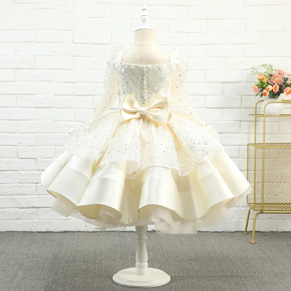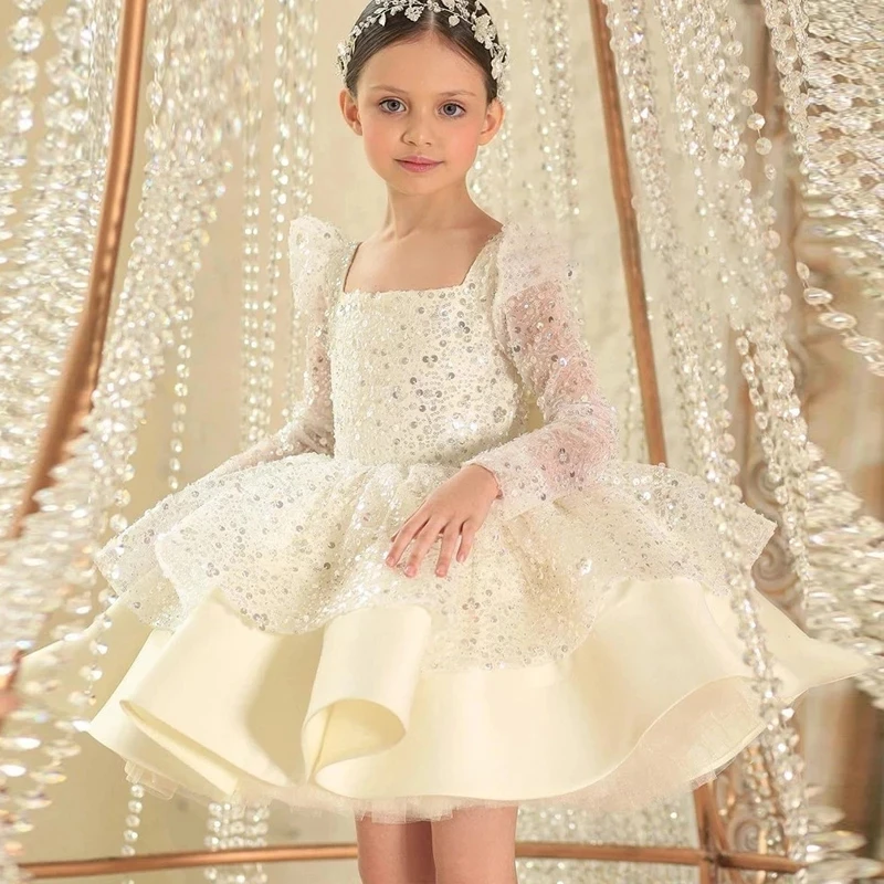Блестками Очаровательное платье с цветочным узором для девочек платья для дня рождения, с длинными рукавами, свадебные и вечерние халат для гостей на выпускной, принцесса, для общения, рождественское платье