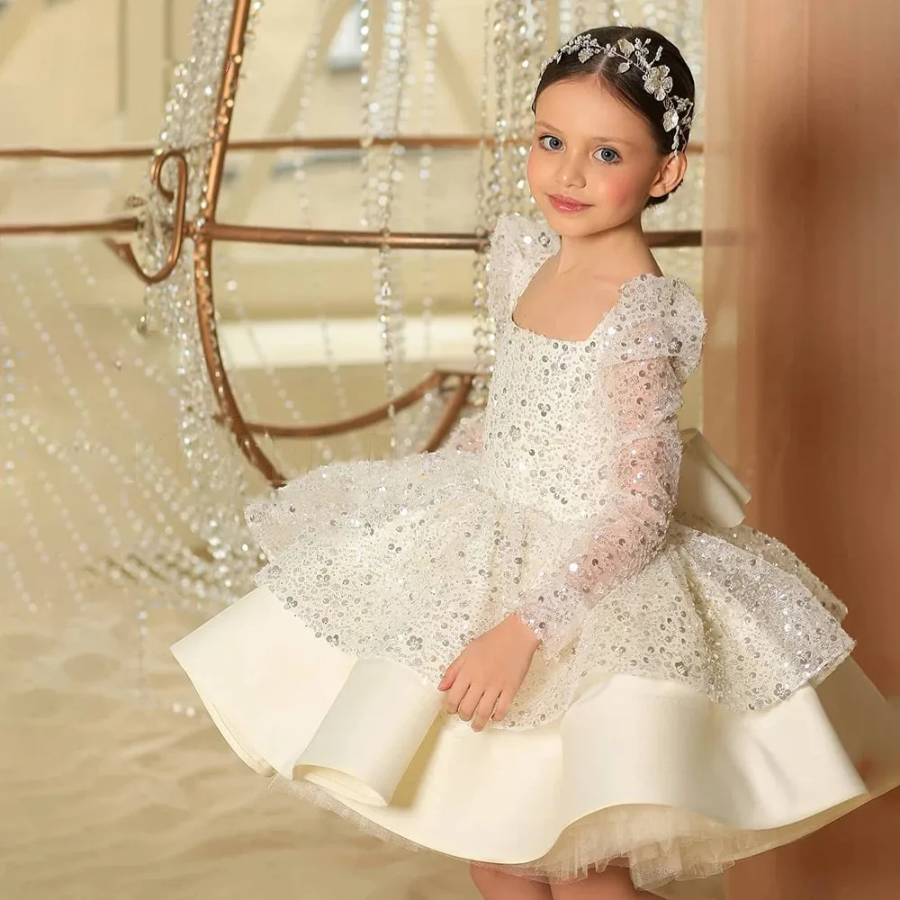Блестящие очаровательные платья с цветами для девочек, с длинным рукавом, для гостей на день рождения, свадьбу и вечерние ринку, платье для выпускного вечера, яркое рождественское платье