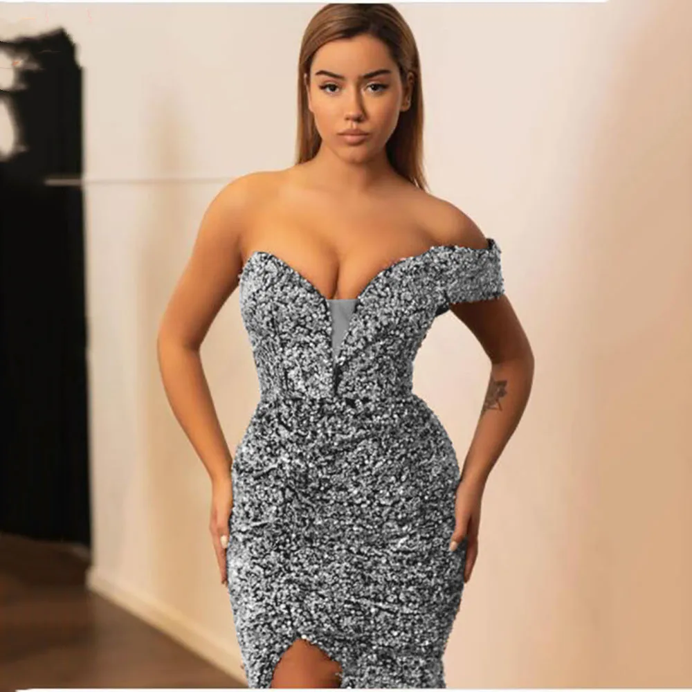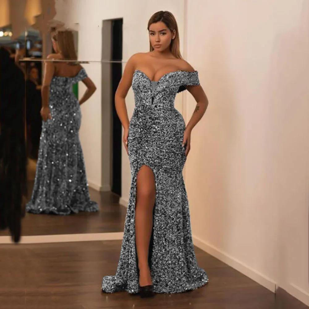 Роскошное вечернее платье-Русалка 2022, вельветовые длинные платья с блестками и разрезом сердечком, открытыми плечами, для официальной вечеринки, вечеринки, свадьбы, выпускного вечера
