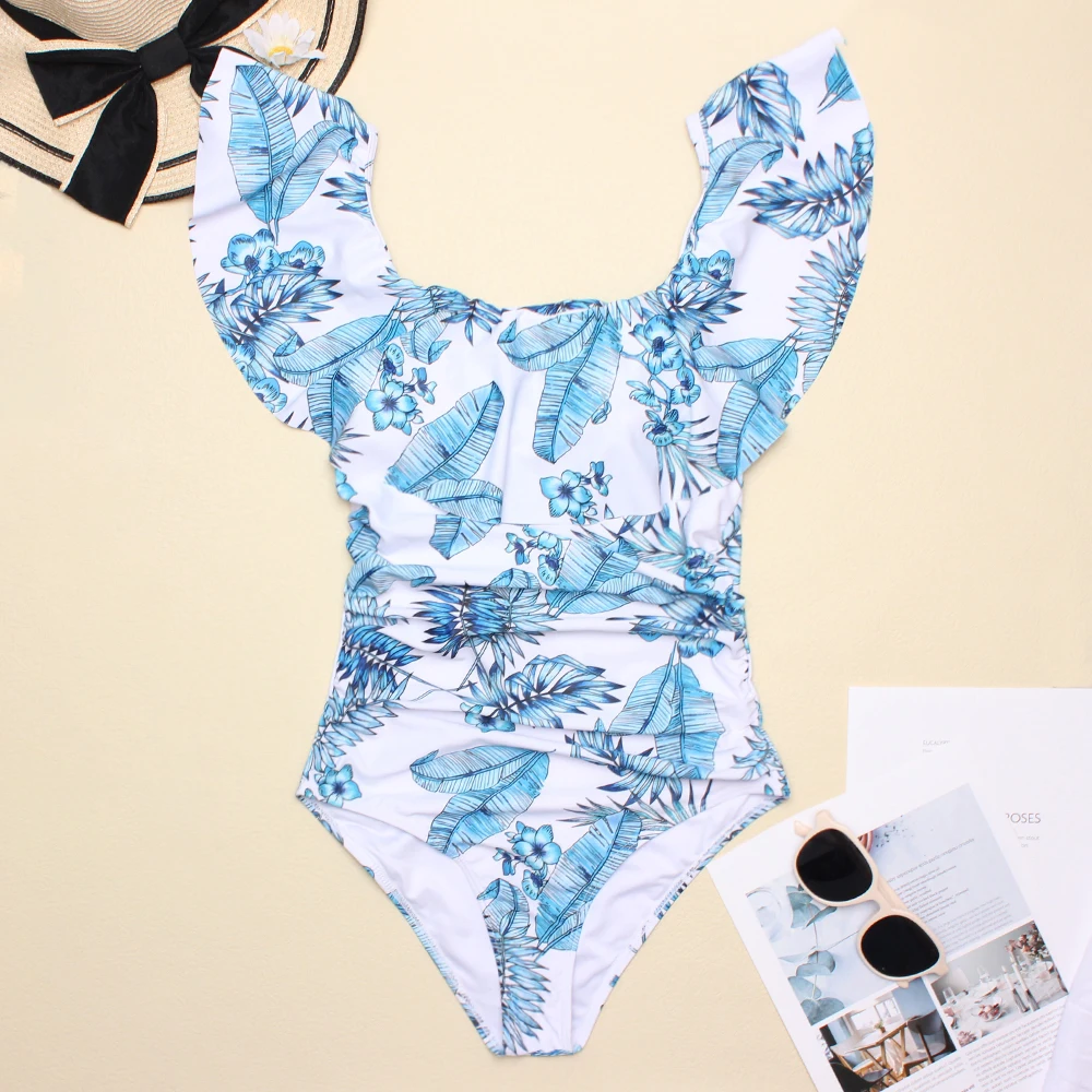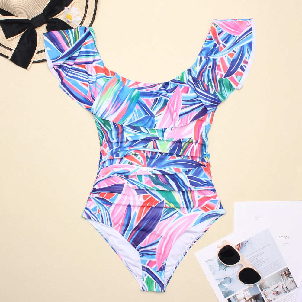 Слитный купальник с принтом 2022, купальник с оборками, летняя пикантная пляжная одежда, Женский облегающий боди, Классический купальный костюм, Размеры S XXL