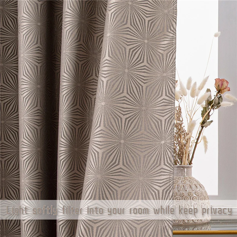 Роскошные занавески для спальни, гостиной, элегантные занавески с геометрическим узором, жаккардовые светонепроницаемые шторы, бежевый подарок