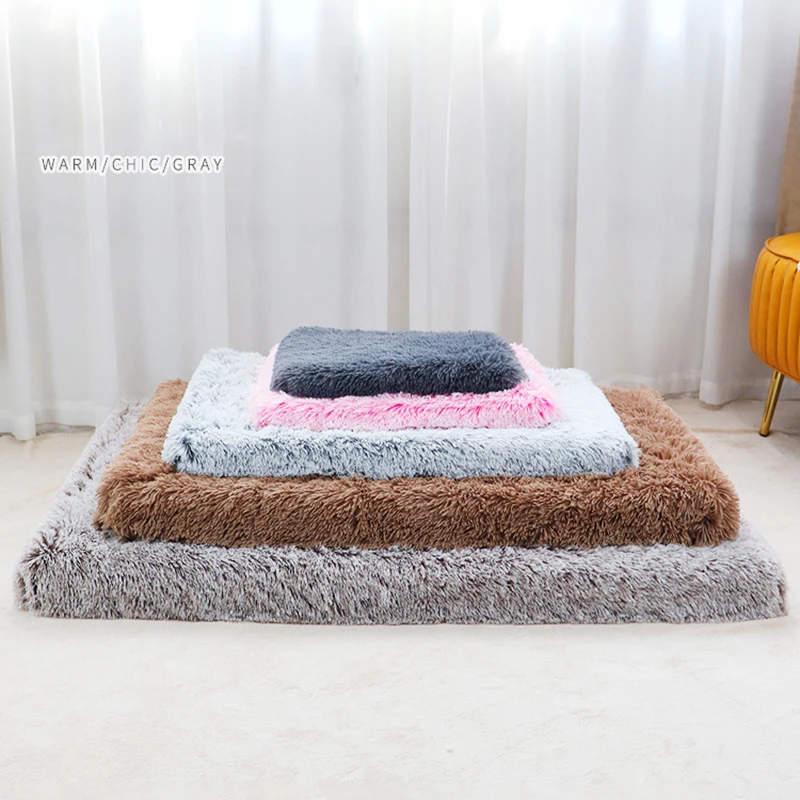 Длинная плюшевая кровать для собаки, кровать для кошки, матрас для домашнего питомца со съемным моющимся покрытием, коврик из пены с памятью, коврик для собаки с нескользящим дном