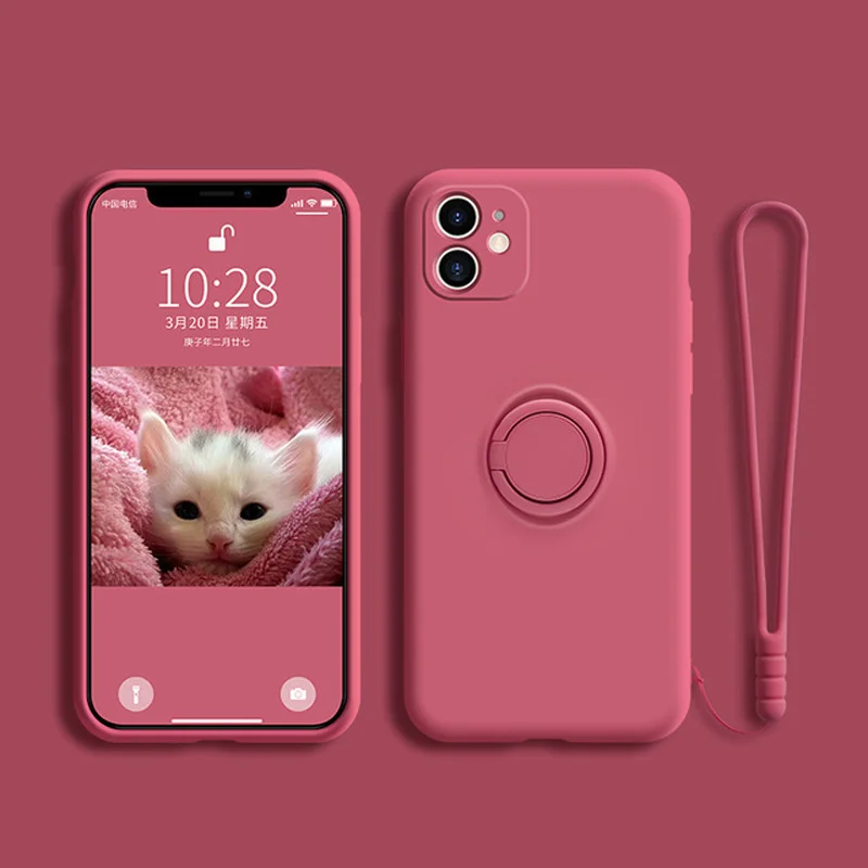 Чехол с кольцом из жидкого силикона для iPhone 12 11 Pro XS Max X X...