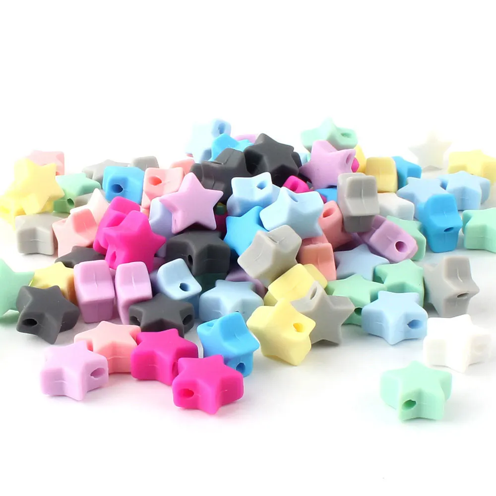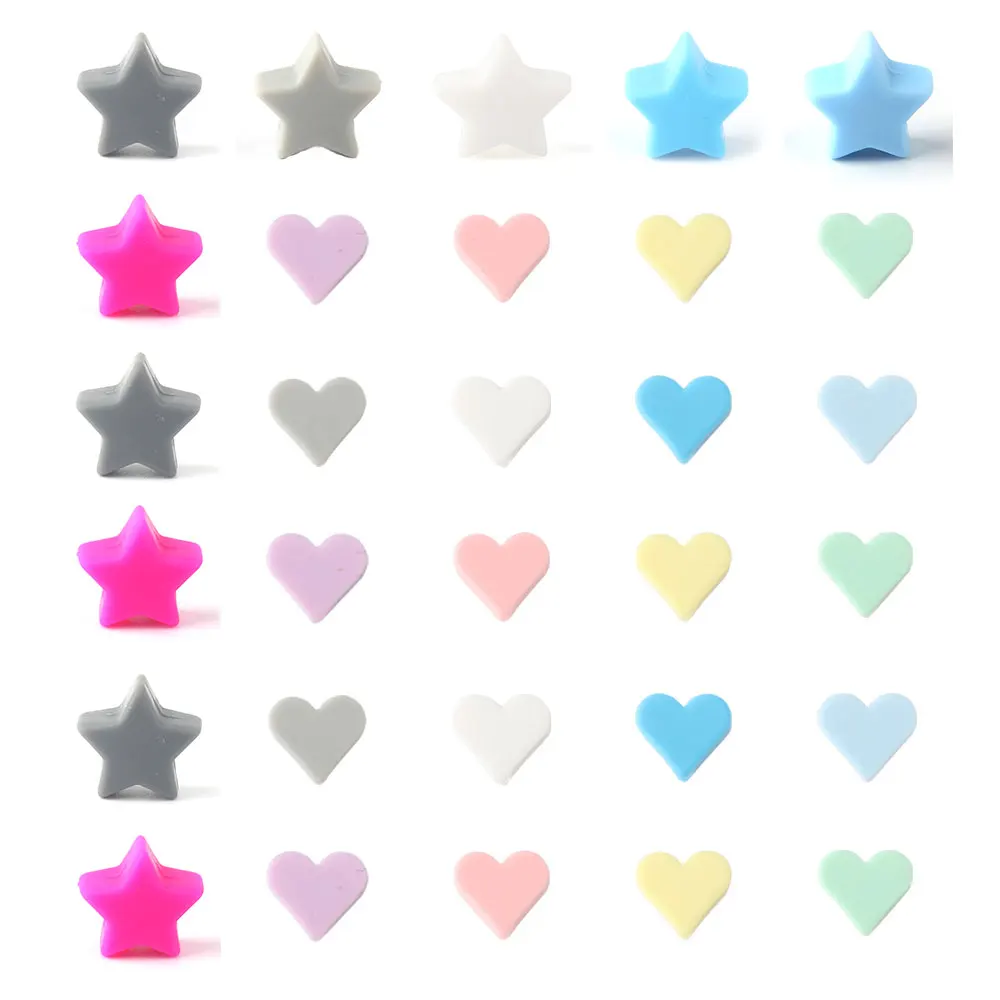 30 шт. силиконовые детские бусы пищевая звезда сердце форма DIY соски цепочка ожерелье аксессуары для ухода Силиконовые Прорезыватели