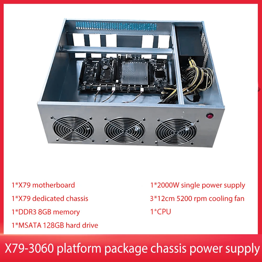 1 * X79 материнская плата1 * X79 специальное шасси1 * ЦП1 * DDR3 8 Гб памяти1 * MSATA 128GB жесткий диск1*2000 Вт одиночный источник питания3 * Вентилятор охлаждения
