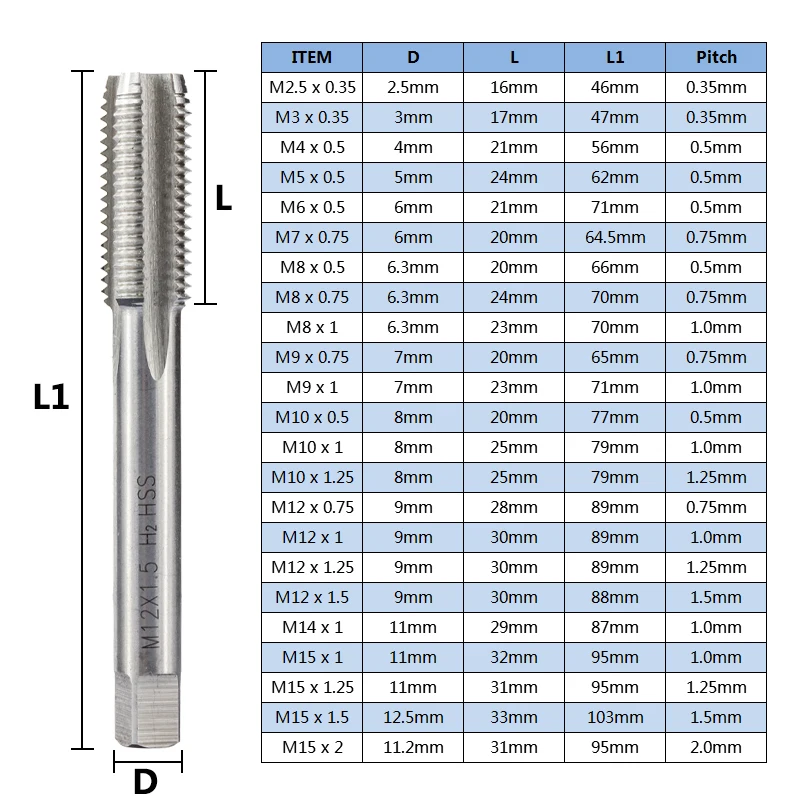 HSS машина Plug Tap M2 M2.5 M3 M4 M5 M6 M7 M8 M9 M10 M12 M14 M15 с правой резьбой метрический Винт инструмент для сверления резьбы