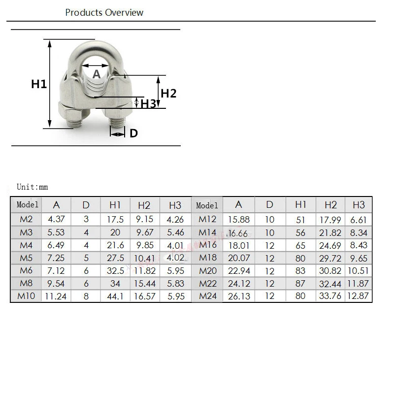 U-образные зажимы для проволочного троса M234568101214 мм, зажимы для проволочного троса, кабельные болты, зажимы для оборудования 304 из нержавеющей стали