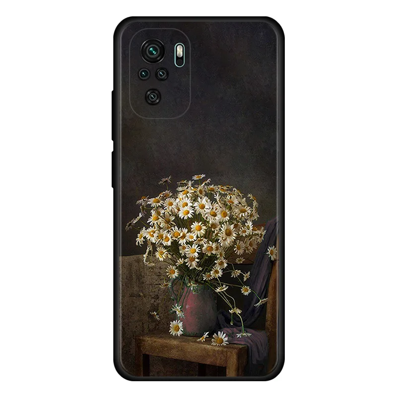 Чехол для телефона Xiaomi Redmi Note 11 Pro 10, флип 9, 9S, 7a, 9A, 8, 8A, 8T, 9T, 8Pro Max, Маргаритка, Подсолнух, искусство, ТПУ, черные мягкие чехлы