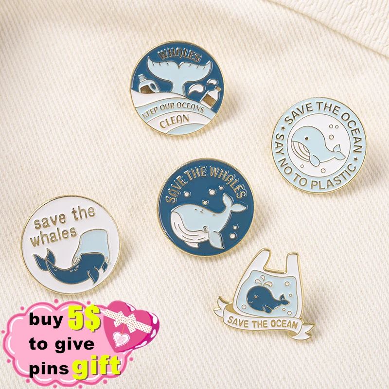 Спасите океан, спасите киты, эмалированные булавки, пластиковые сто...