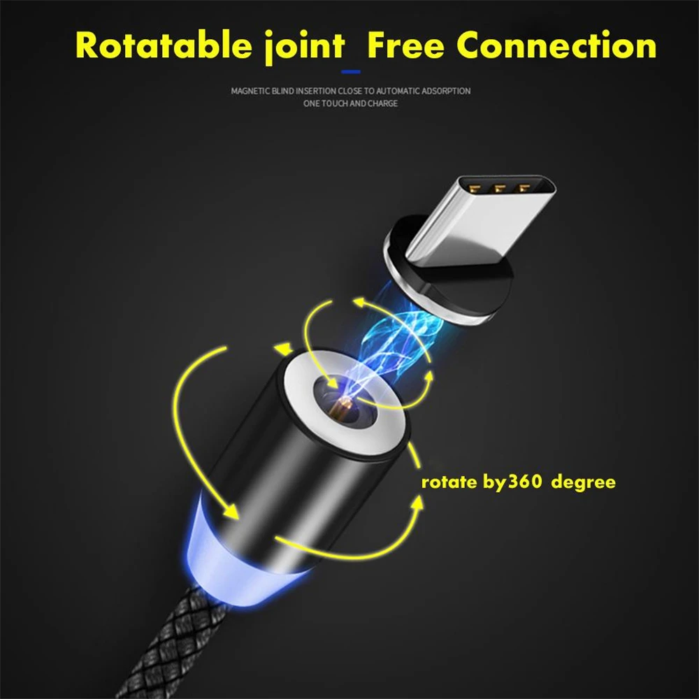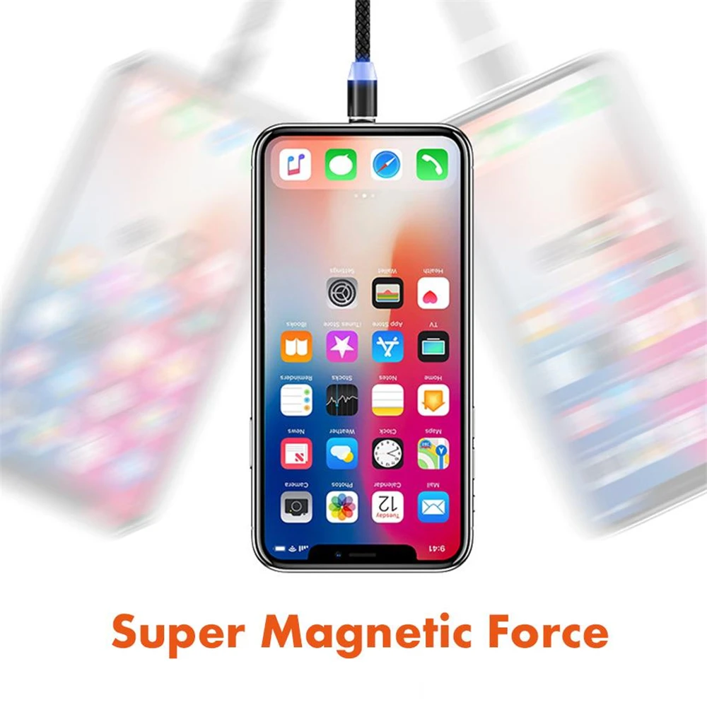 Магнитный USB-кабель для iPhone 12, 11, Xiaomi, Samsung, кабель типа C, светодиодный кабель для быстрой зарядки и передачи данных, кабель Micro USB, шнур, провод