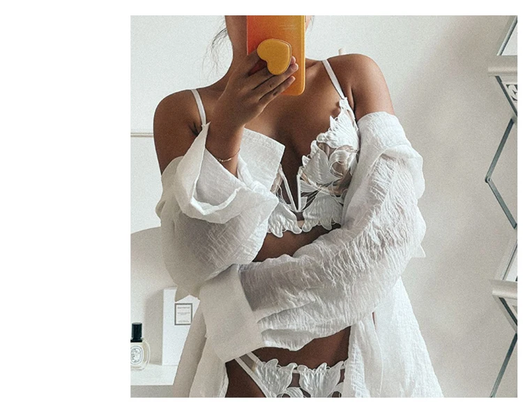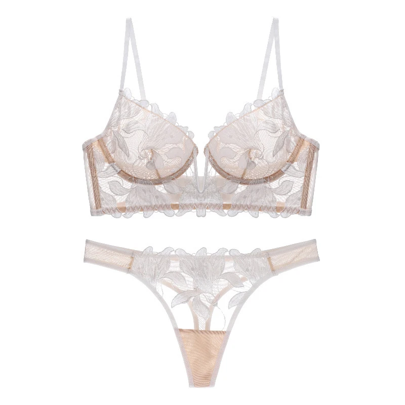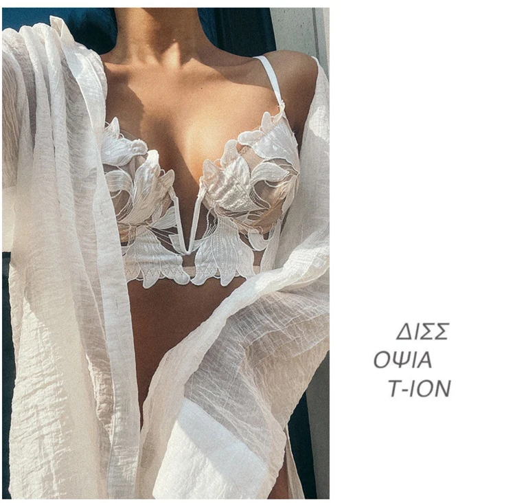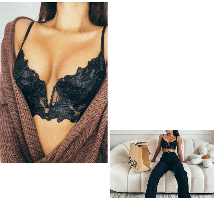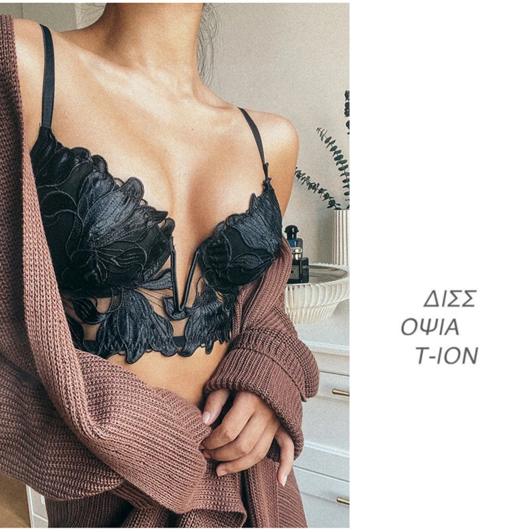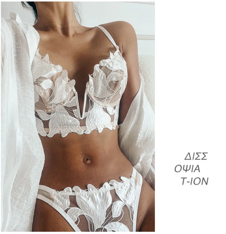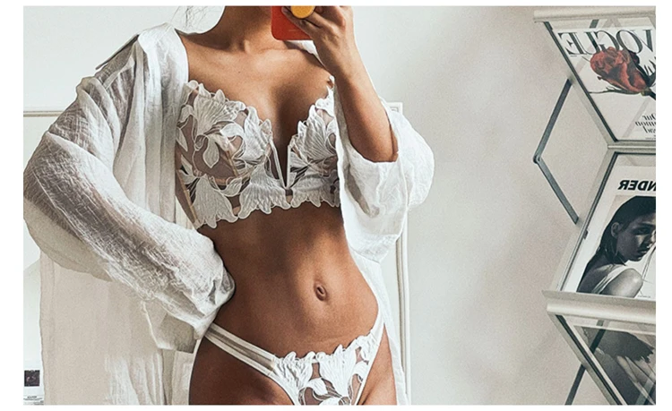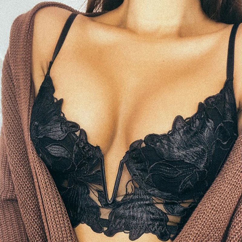 Кружевное нижнее белье с глубоким V-образным вырезом и вышивкой