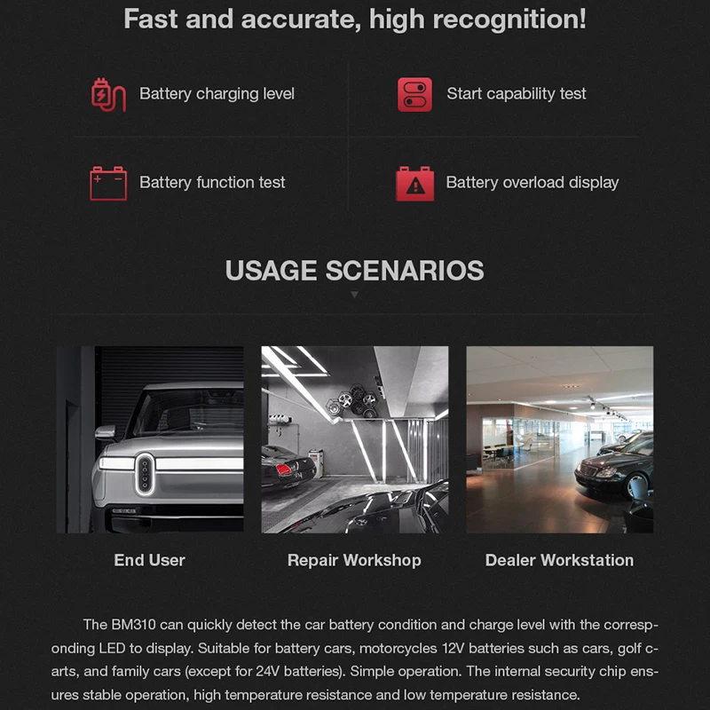 Тестер автомобильного аккумулятора BM310, автоматическая проверка, ...