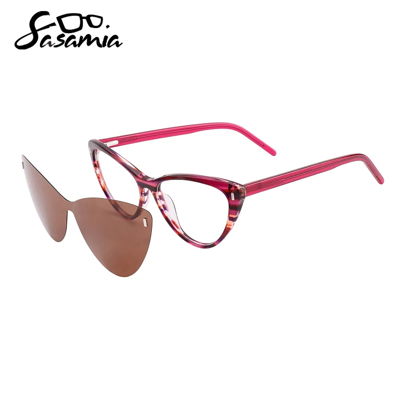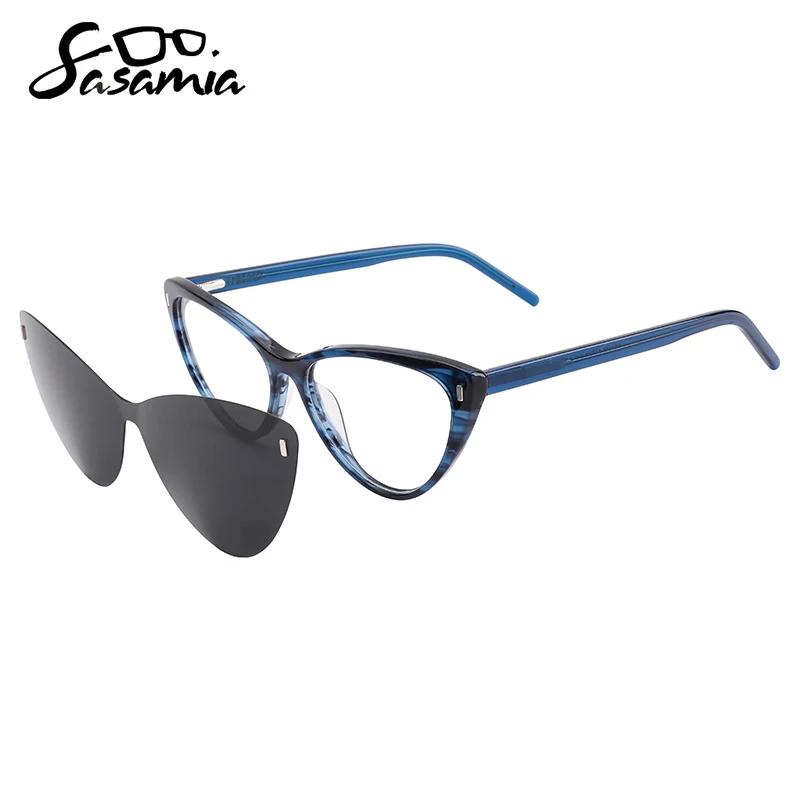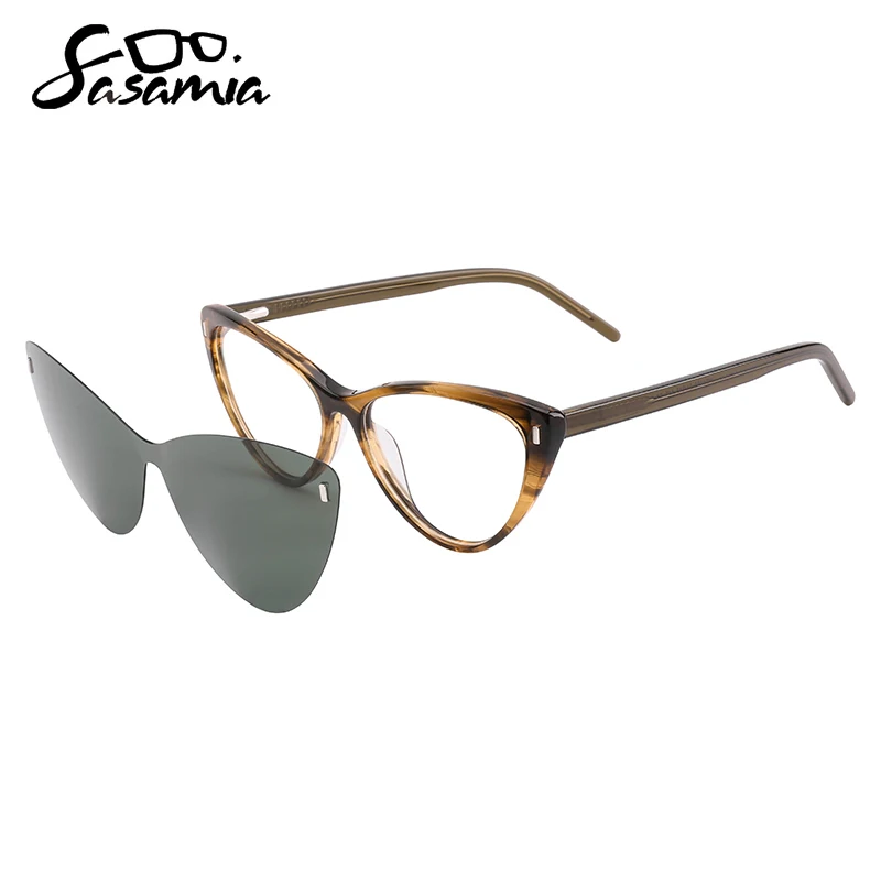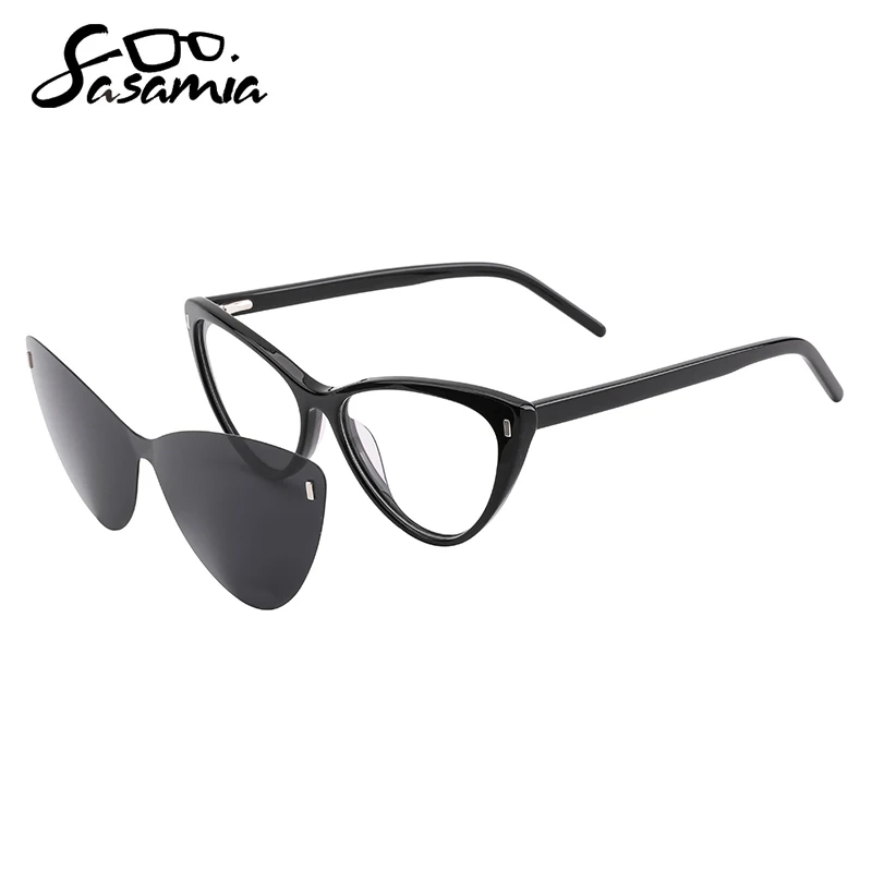 Женские поляризационные солнцезащитные очки SASAMIA, 2 в 1, с магнитным зажимом, очки из ацетата, оптические очки по рецепту, UV400, солнцезащитные очки