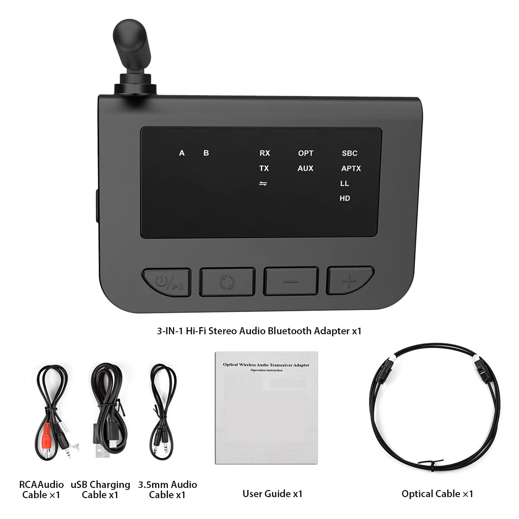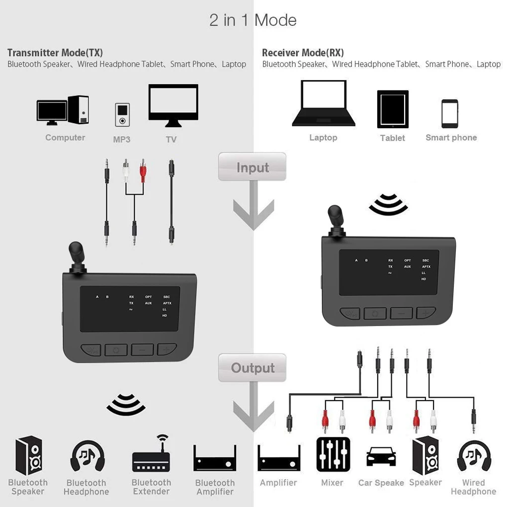 Беспроводной передатчик 2-в-1 Bluetooth-совместимый приемник с низкой задержкой V5.0 HD TXRXBYPASS со светодиодным индикатором и адаптером AUX