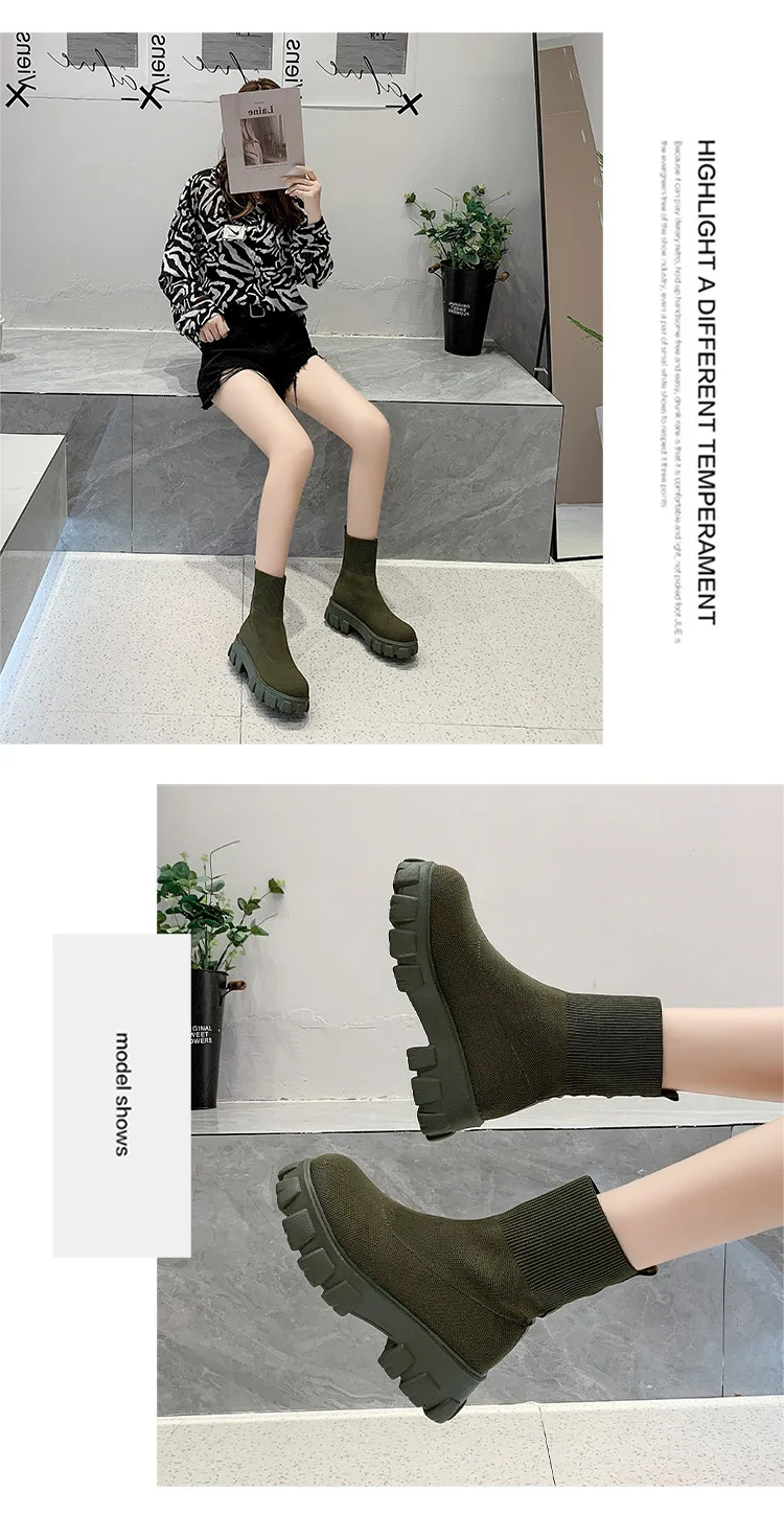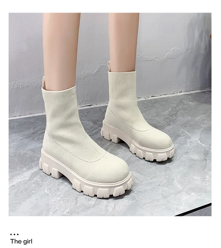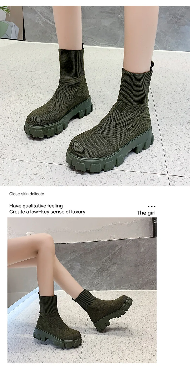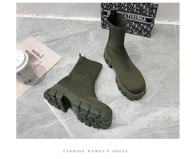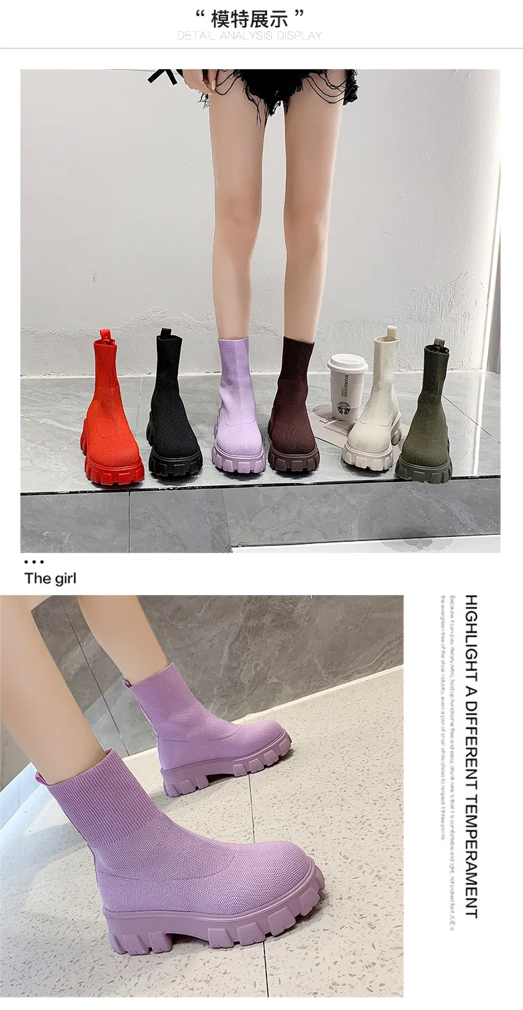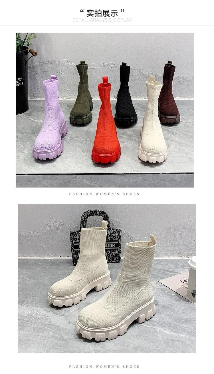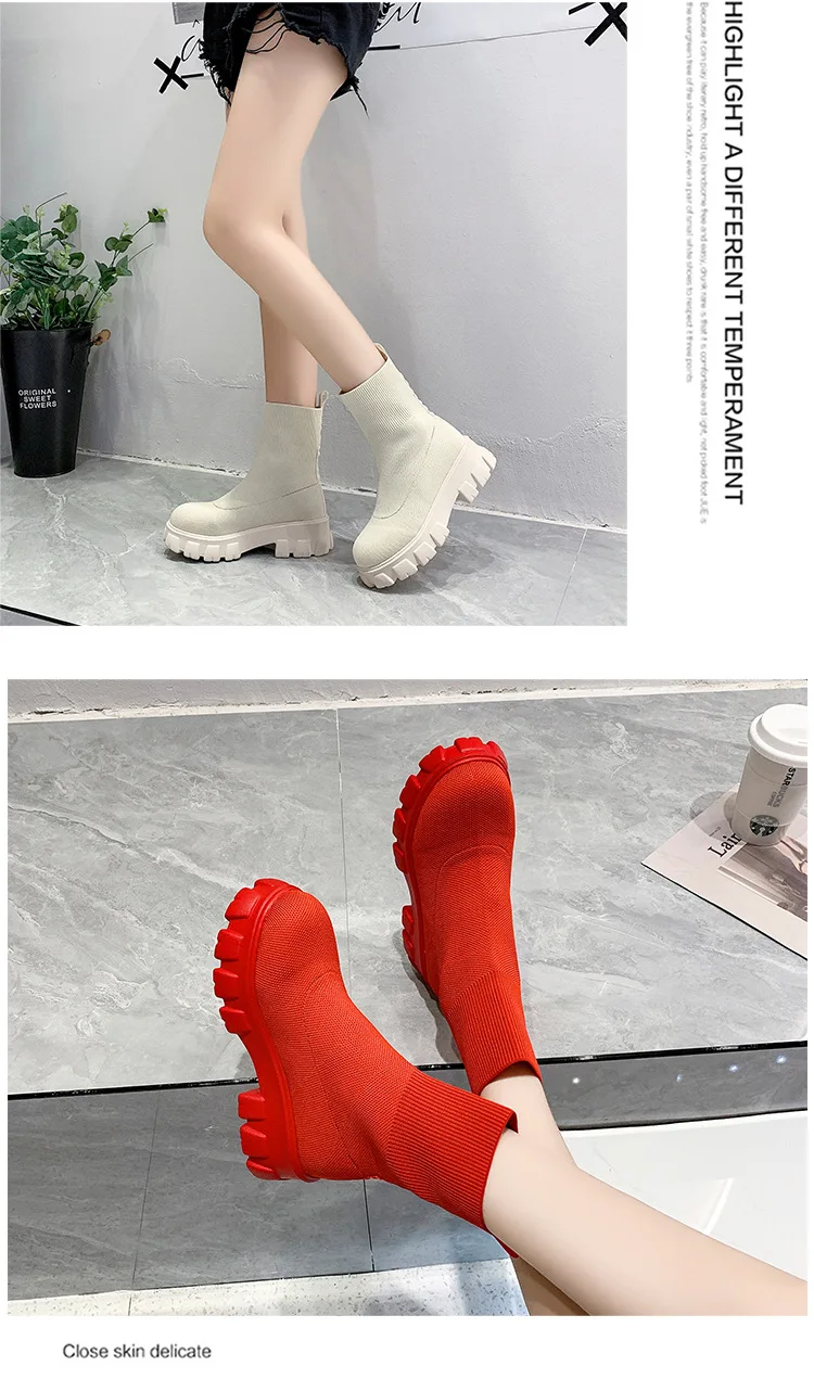 Женские Повседневные вязаные ботильоны, красные ботинки-носки на толстой подошве, весна 2022
